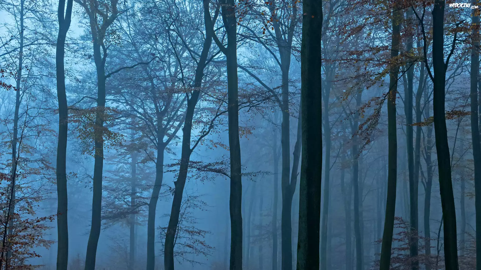 Zdjęcia, Las, Drzewa, Świt, Mgła