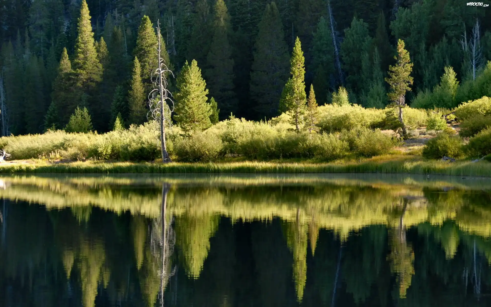 Zdjęcia, Las, Drzewa, Woda, Odbicie