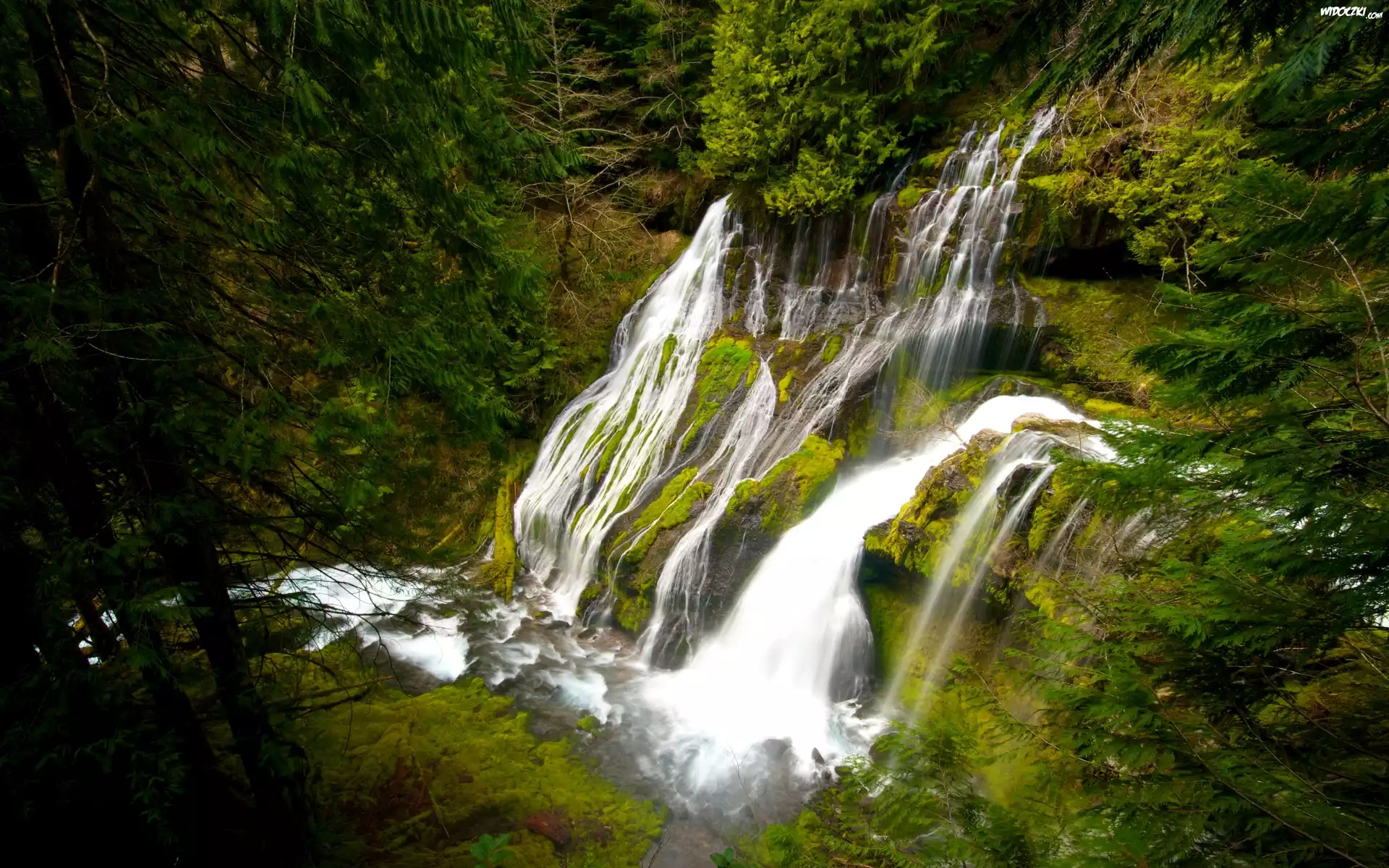 Wodospad Panther Creek Falls, Stan Waszyngton, Stany Zjednoczone Las, Drzewa