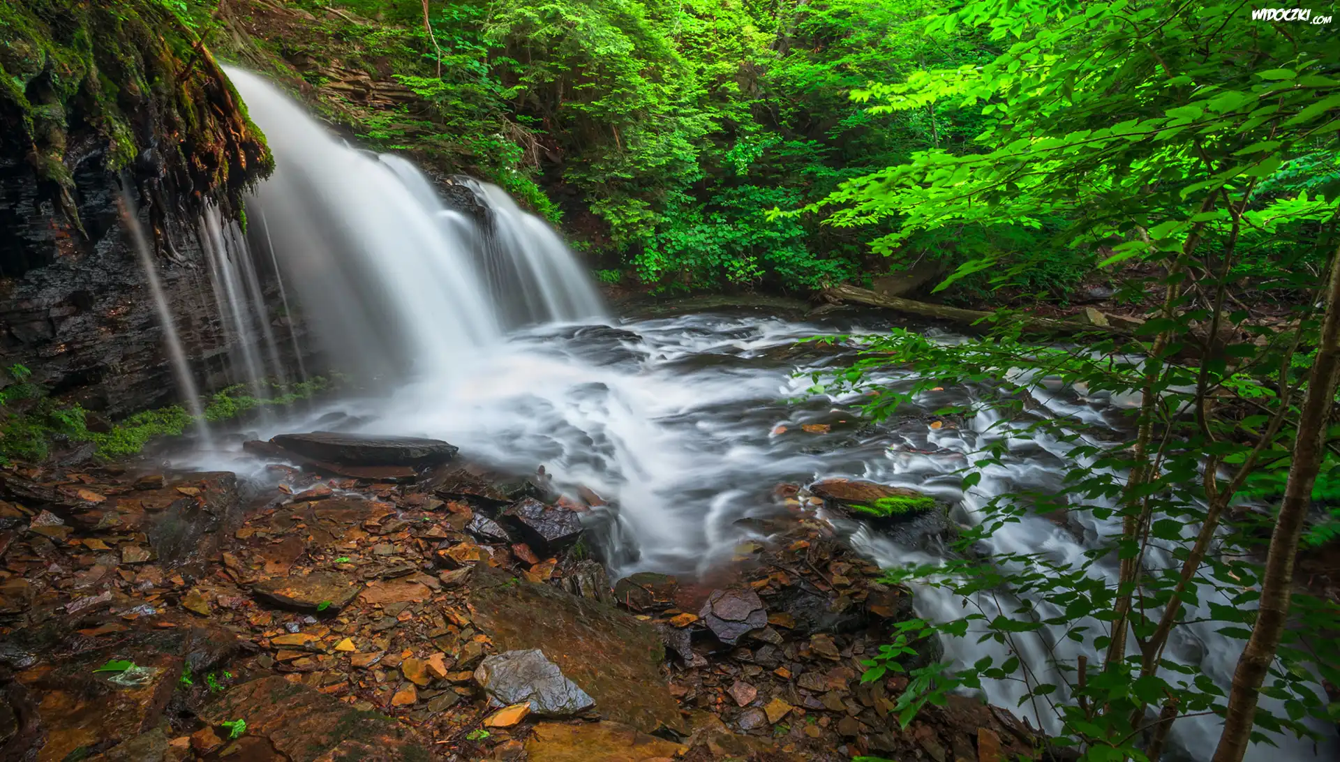 Zdj臋cia, Las, Drzewa, Wodospad, Kamienie