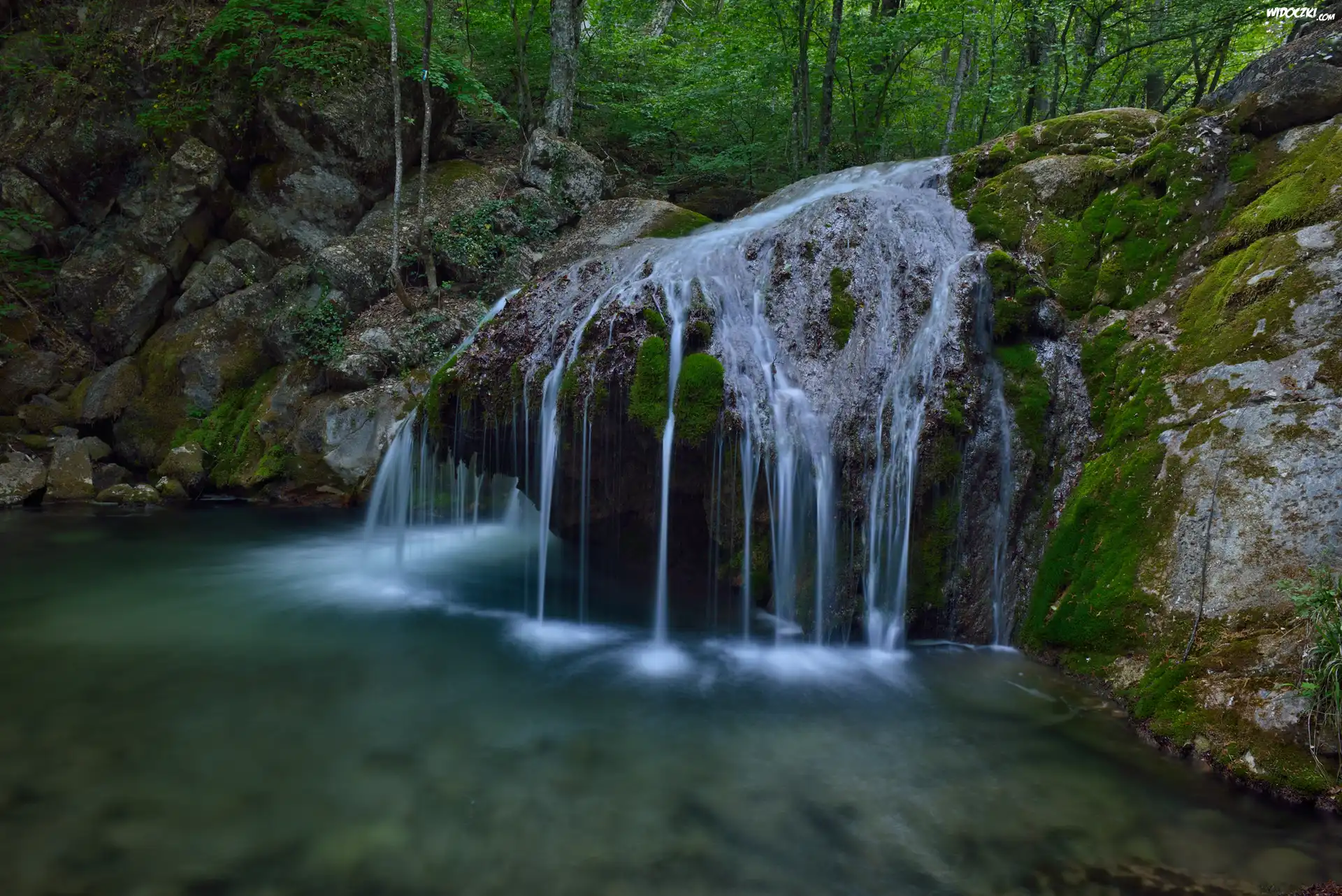 Zdjęcia, Las, Skały, Drzewa, Wodospad, Rzeka