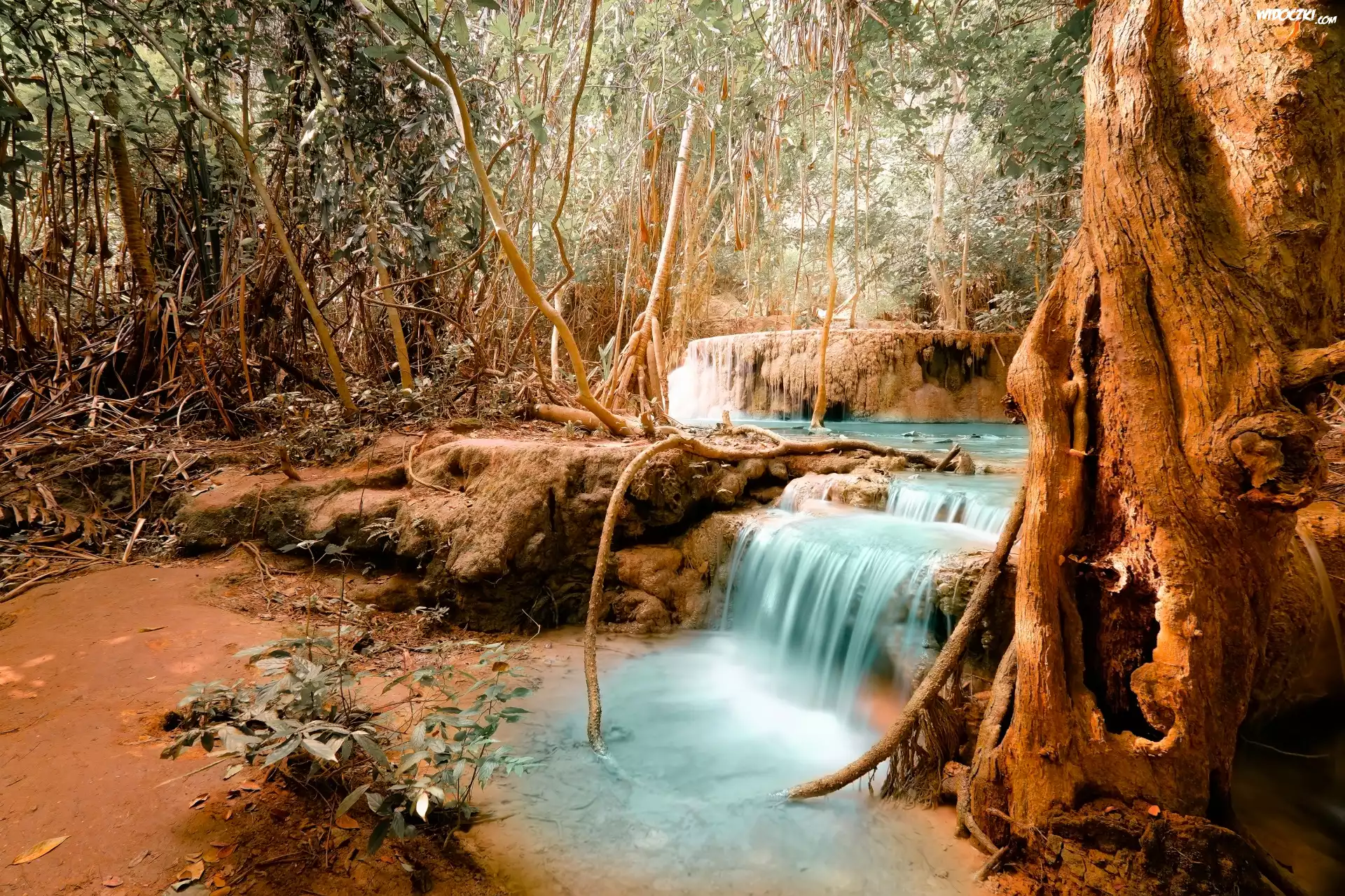 Las, Rzeka, Kaskada, Wodospad, Drzewa