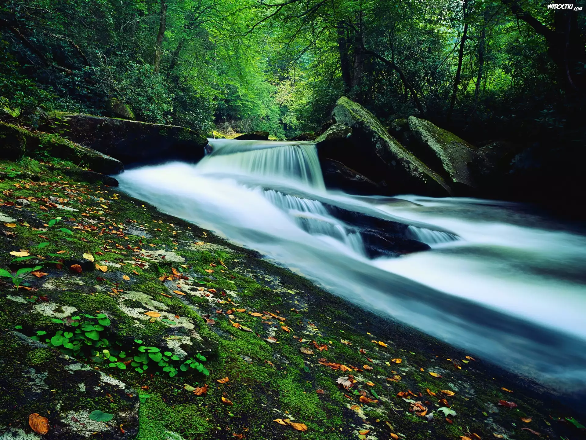 Zdjęcia, Las, Rzeka, Wodospad, Skały
