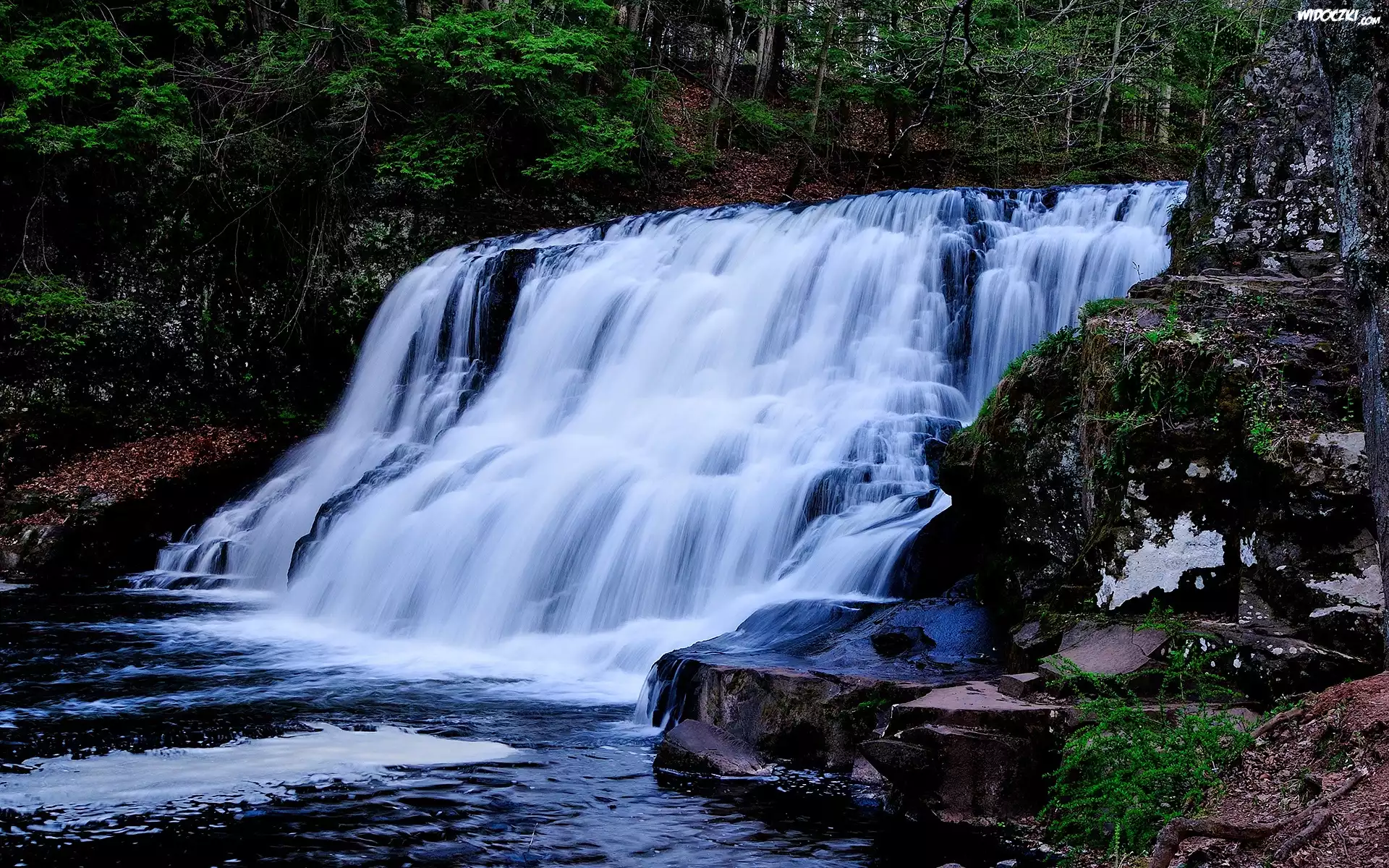 Zdjęcia, Wodospad, Las, Skały