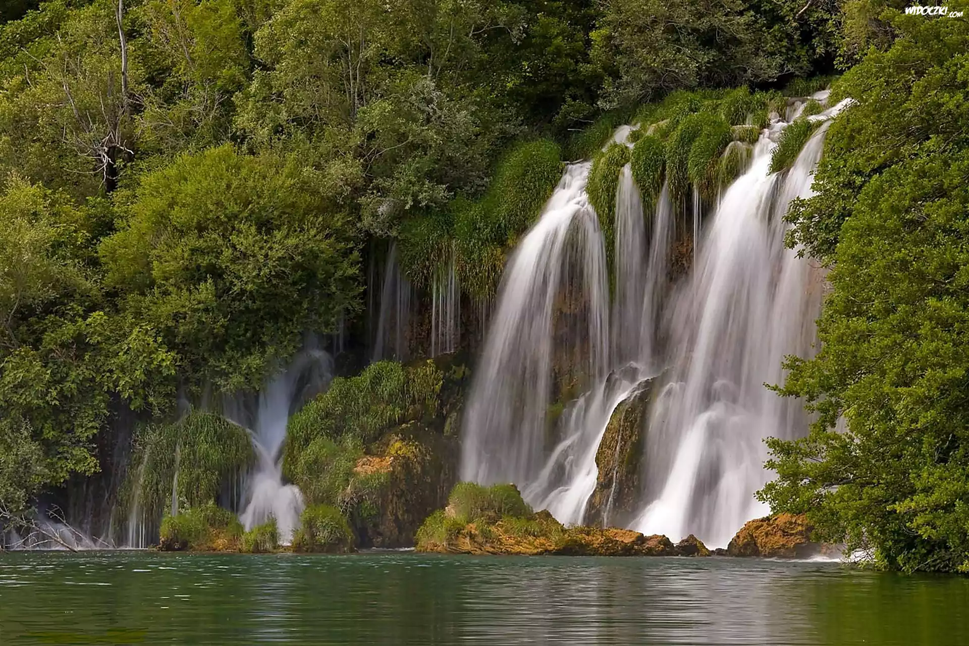 Zdjęcia, Las, Skały, Wodospad, Jezioro