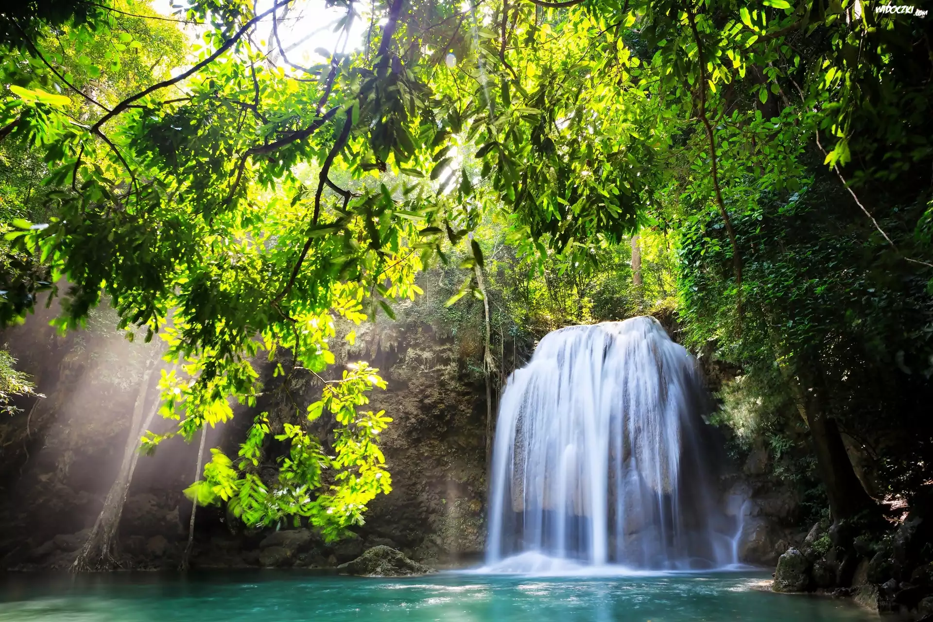 Zdjęcia, Wodospad, Las, Zieleń