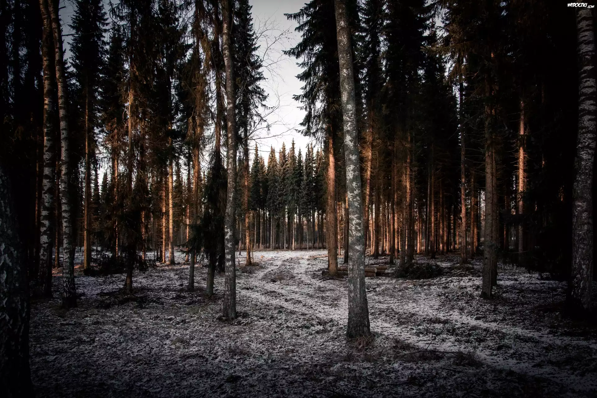 Zdj臋cia, Las, Zima, Wysokie, Drzewa