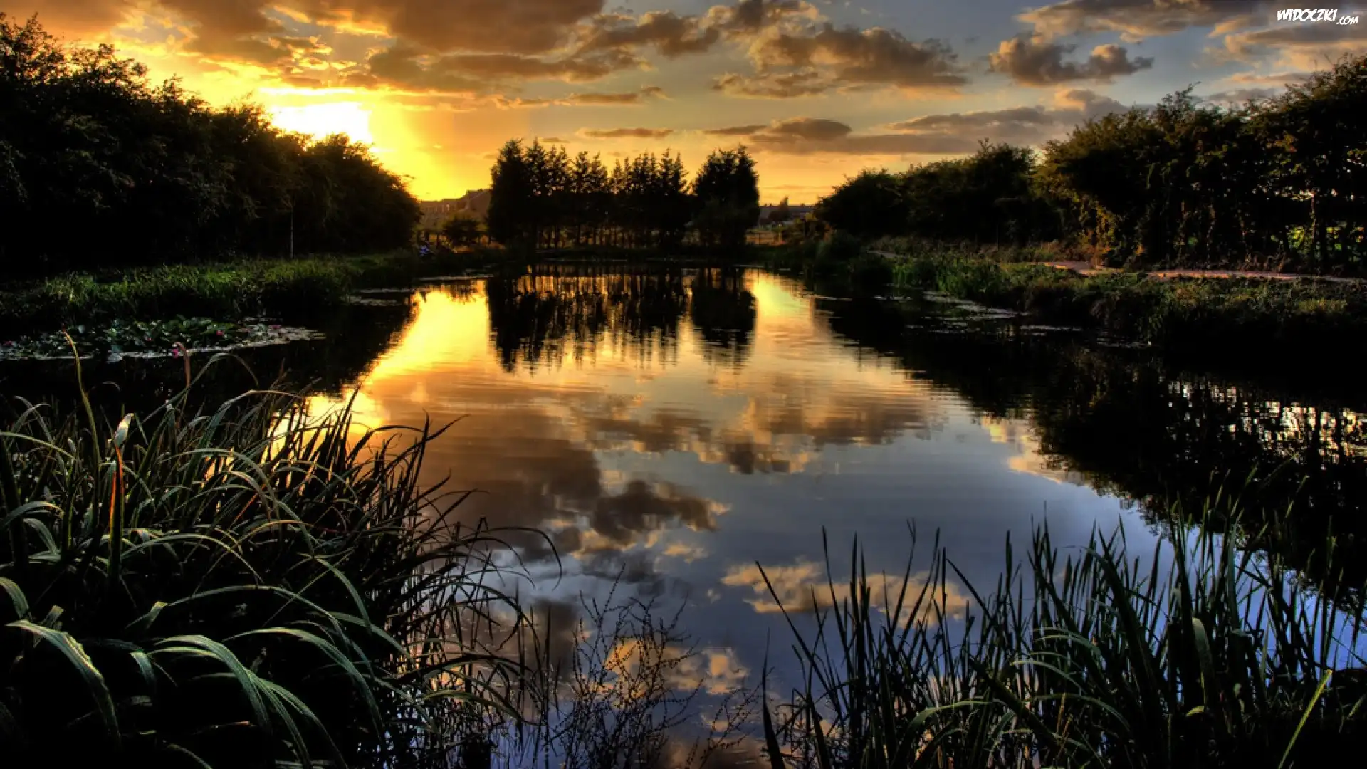 Zdjęcia, Las, Jezioro, Zachód, Słońca