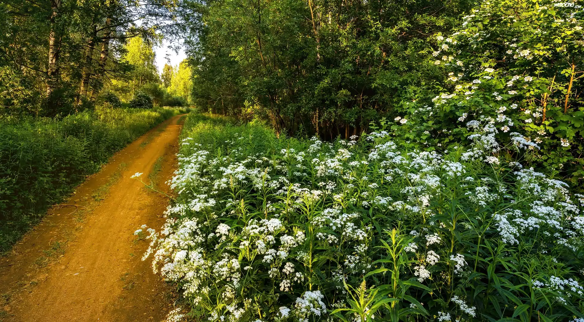 Zdjęcia, Las, Droga, Zarośla, Kwiaty