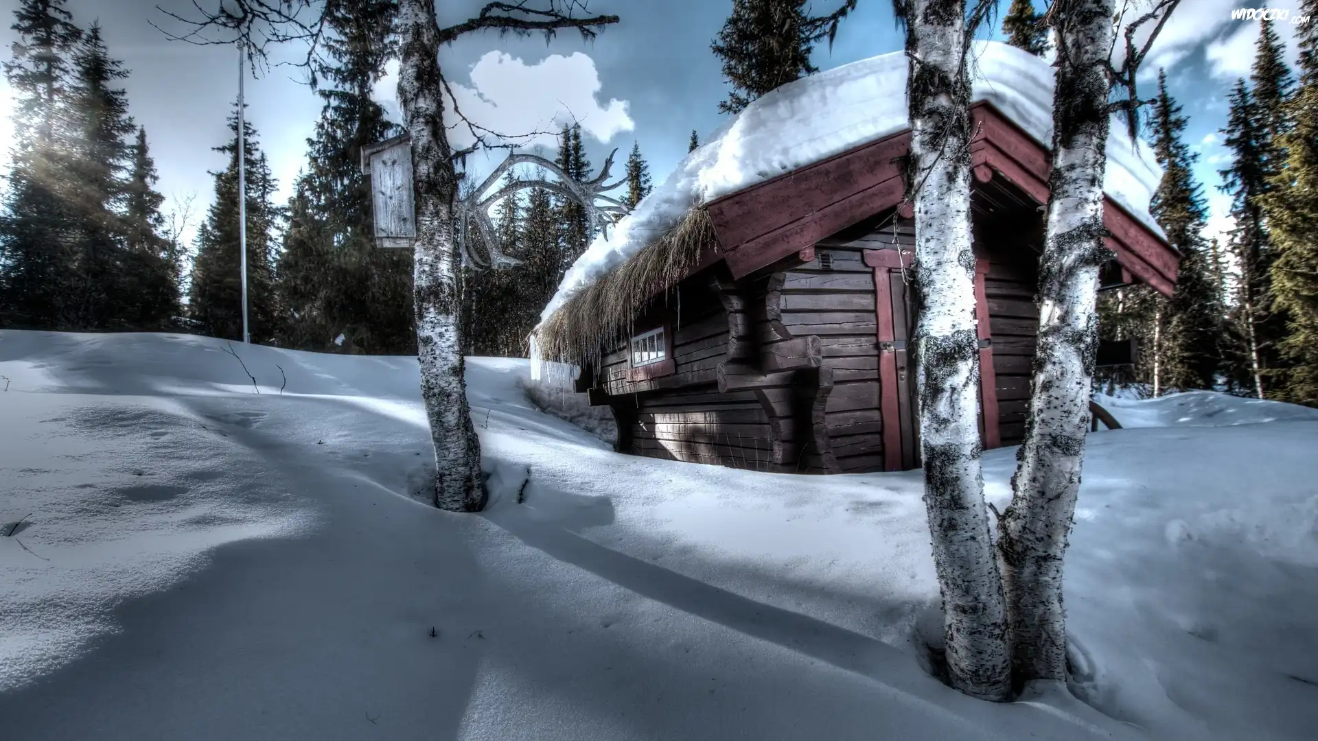 Zdjęcia, Las, Chata, Zaspy, Zima