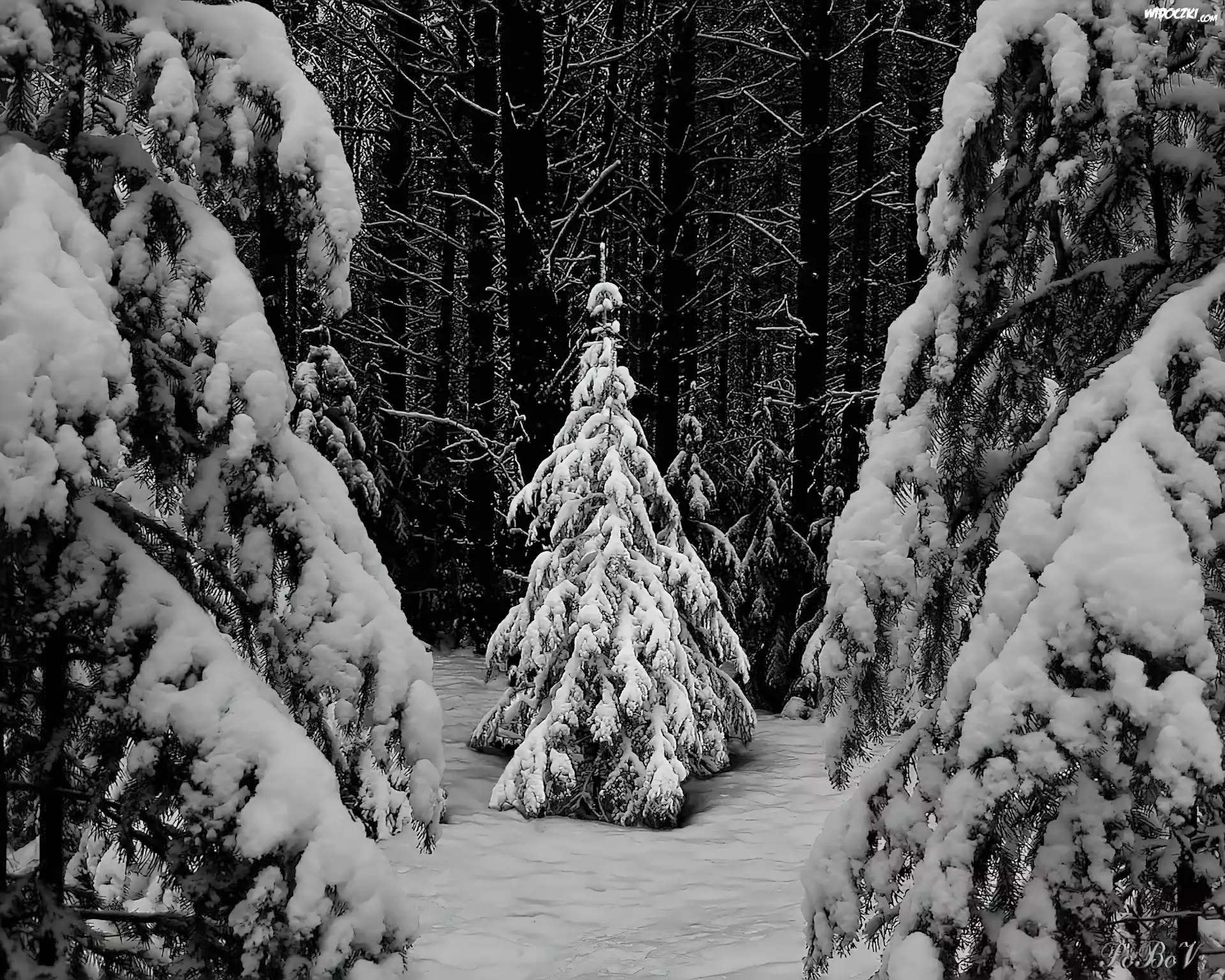Zdjęcia, Las, Drzewa, Iglaste, Śnieg, Zaspy, Mróz
