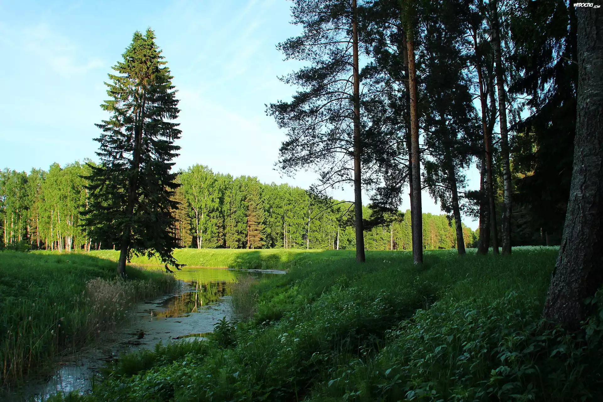 Zdjęcia, Las, Rzeczka, Zieleń, Lato