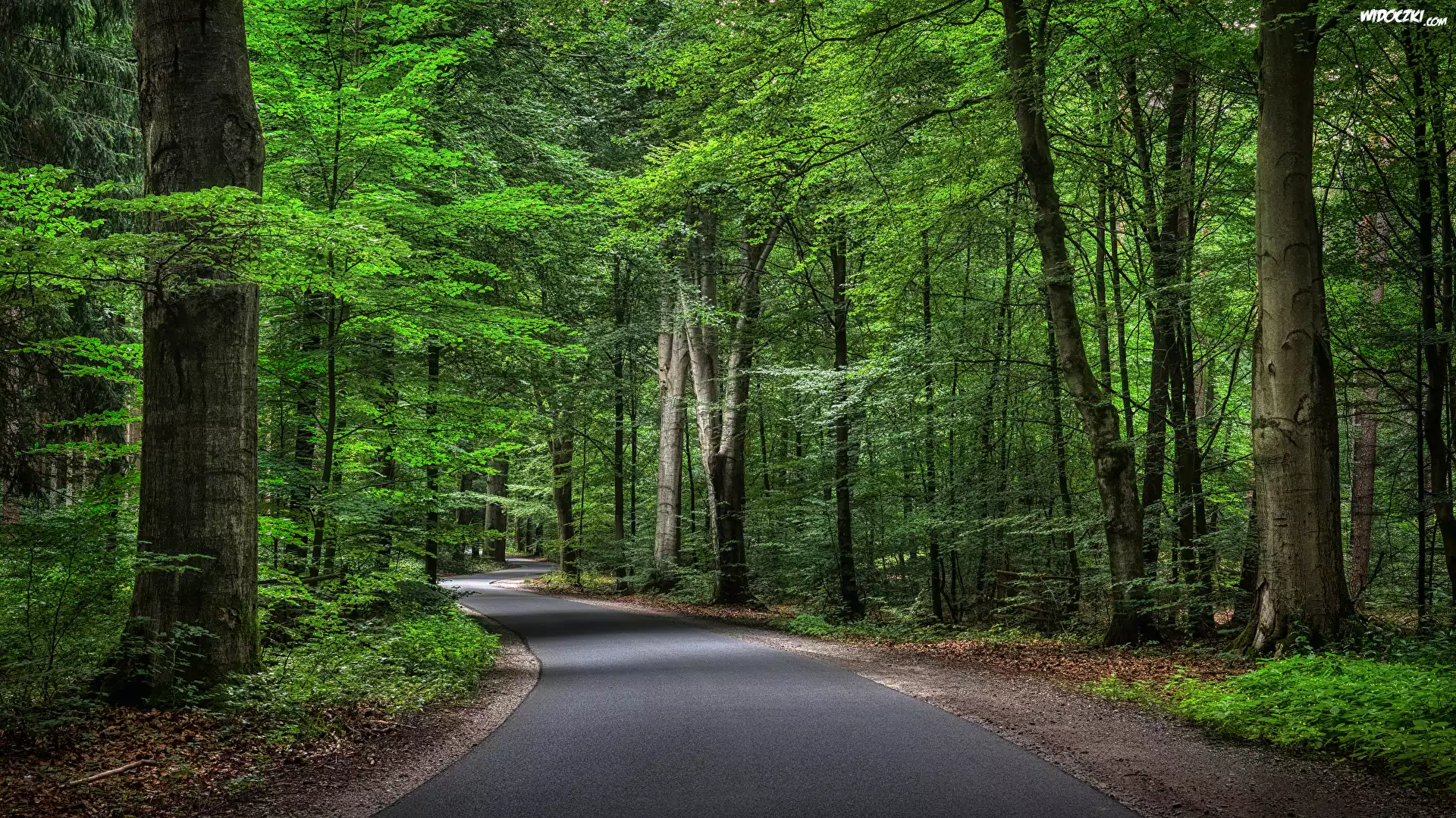 Zdjęcia, Zielony, Las, Asfaltowa, Droga, Drzewa, Krzewy, Roślinność