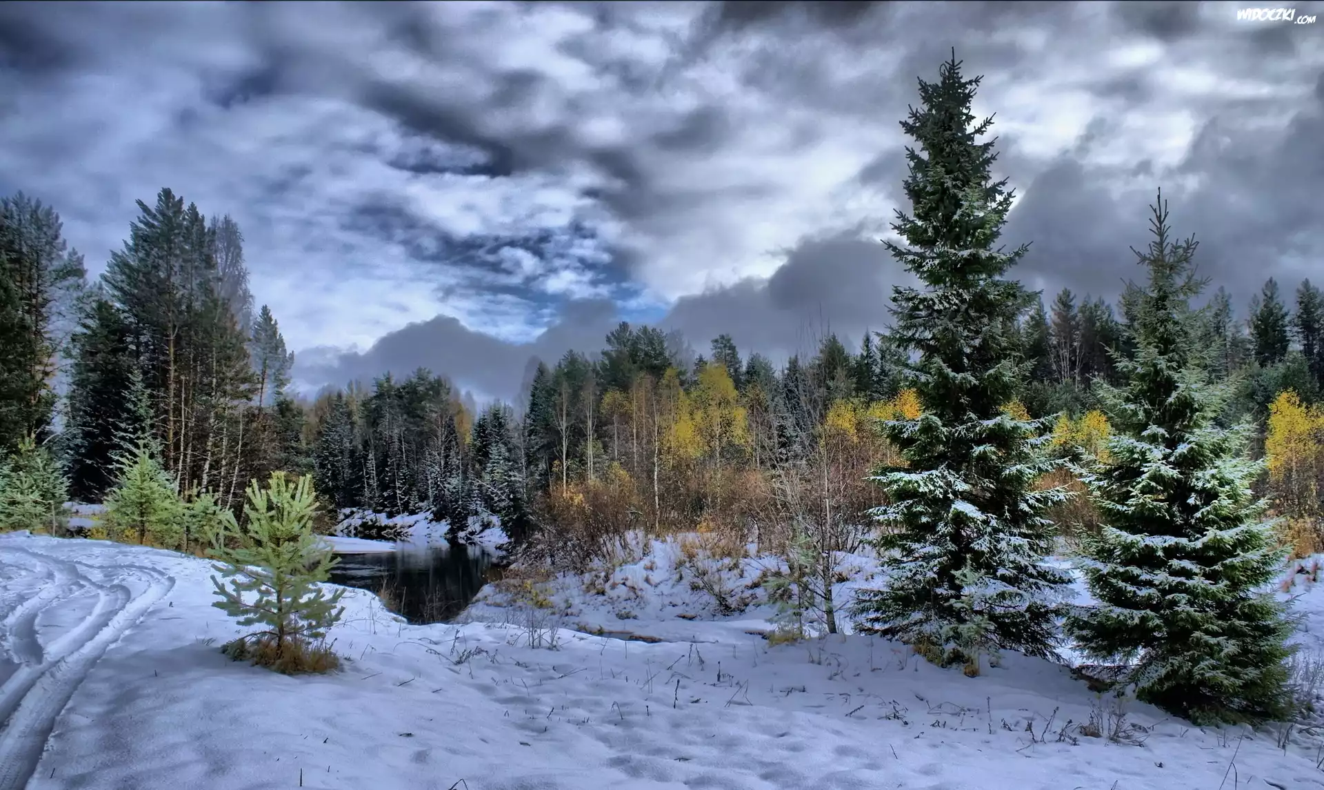 Zima, Las, Chmury