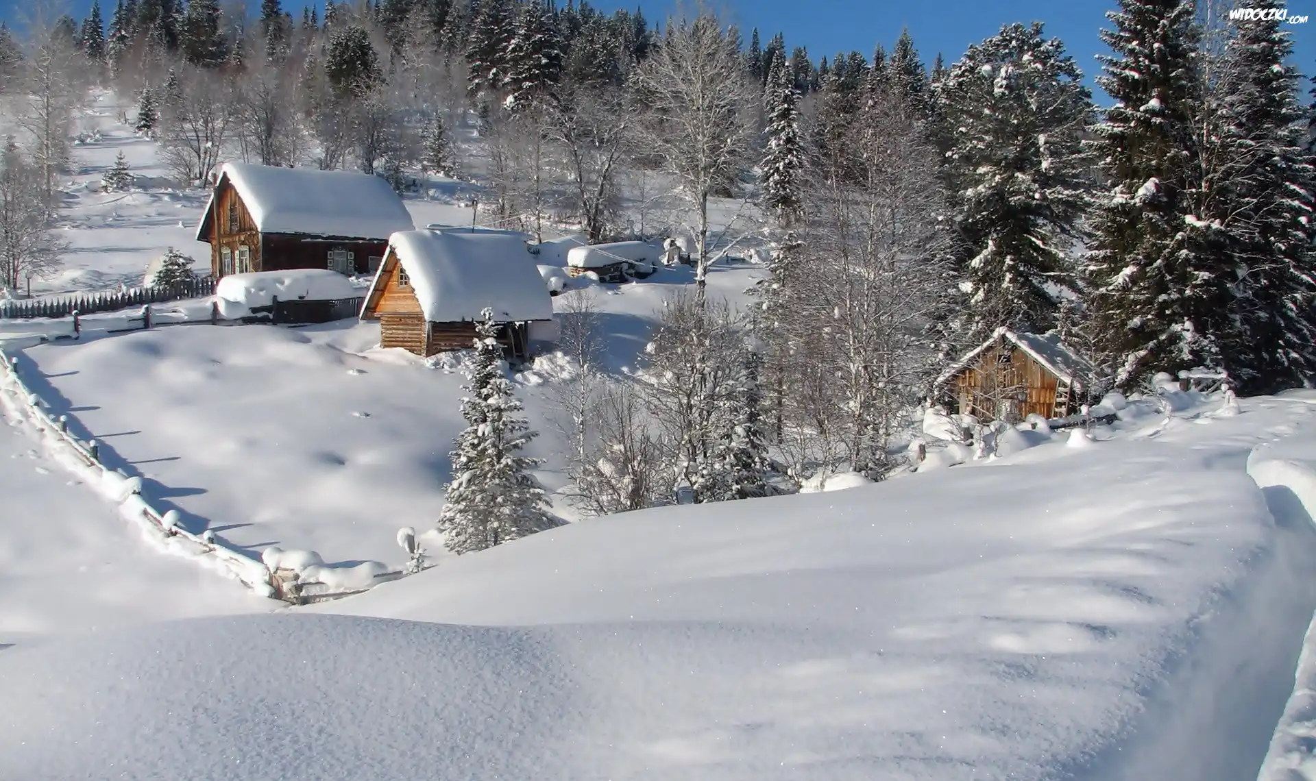 Zdj臋cia, Zima, Las, Domy