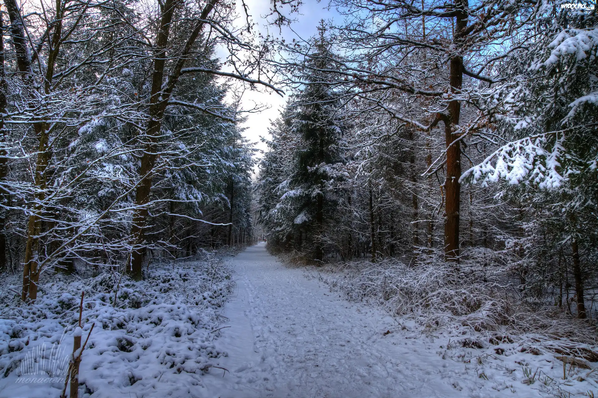 Zdjęcia, Las, Droga, Drzewa, Zima, Śnieg