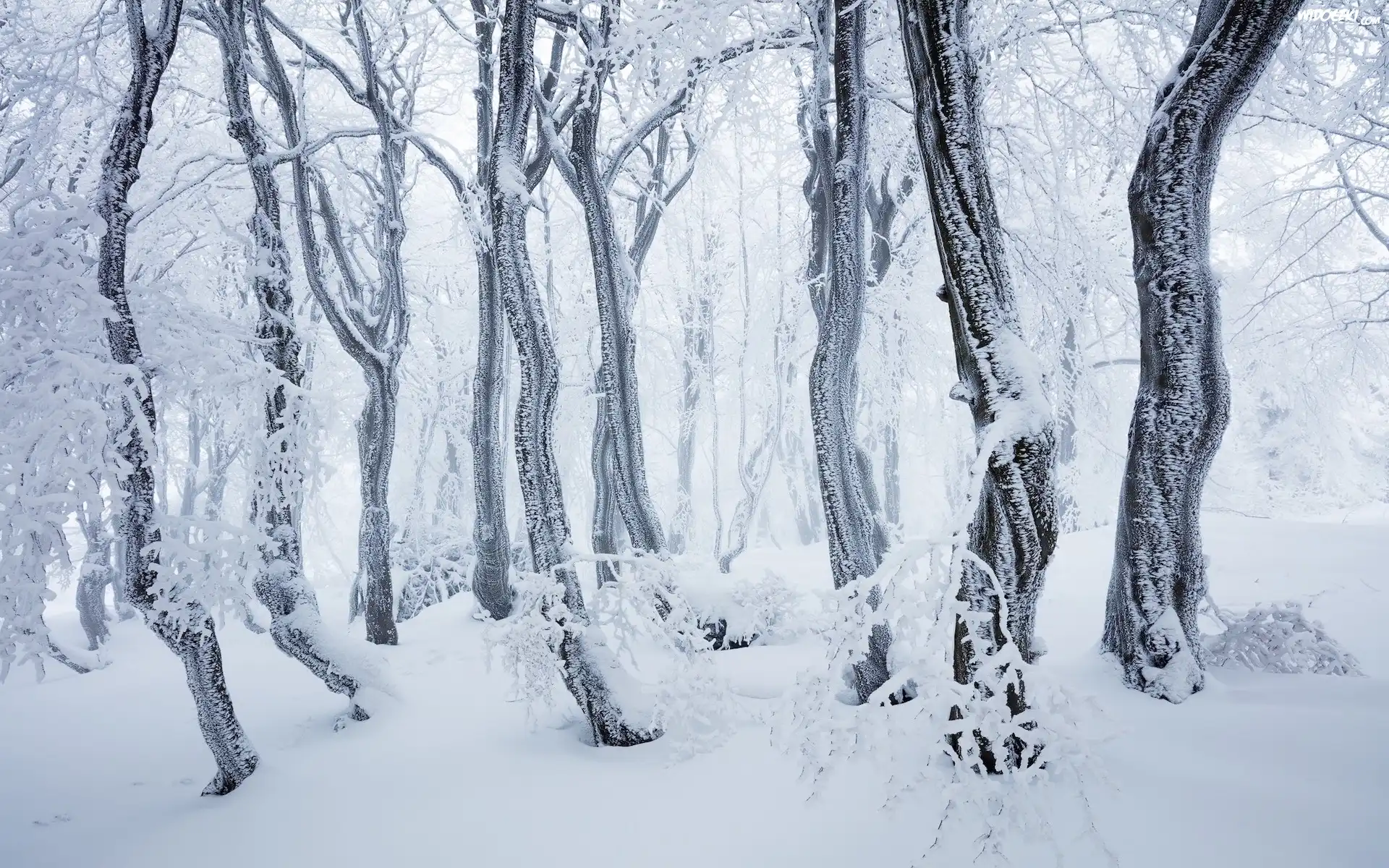 Zdjęcia, Las, Drzewa, Zima, Śnieg