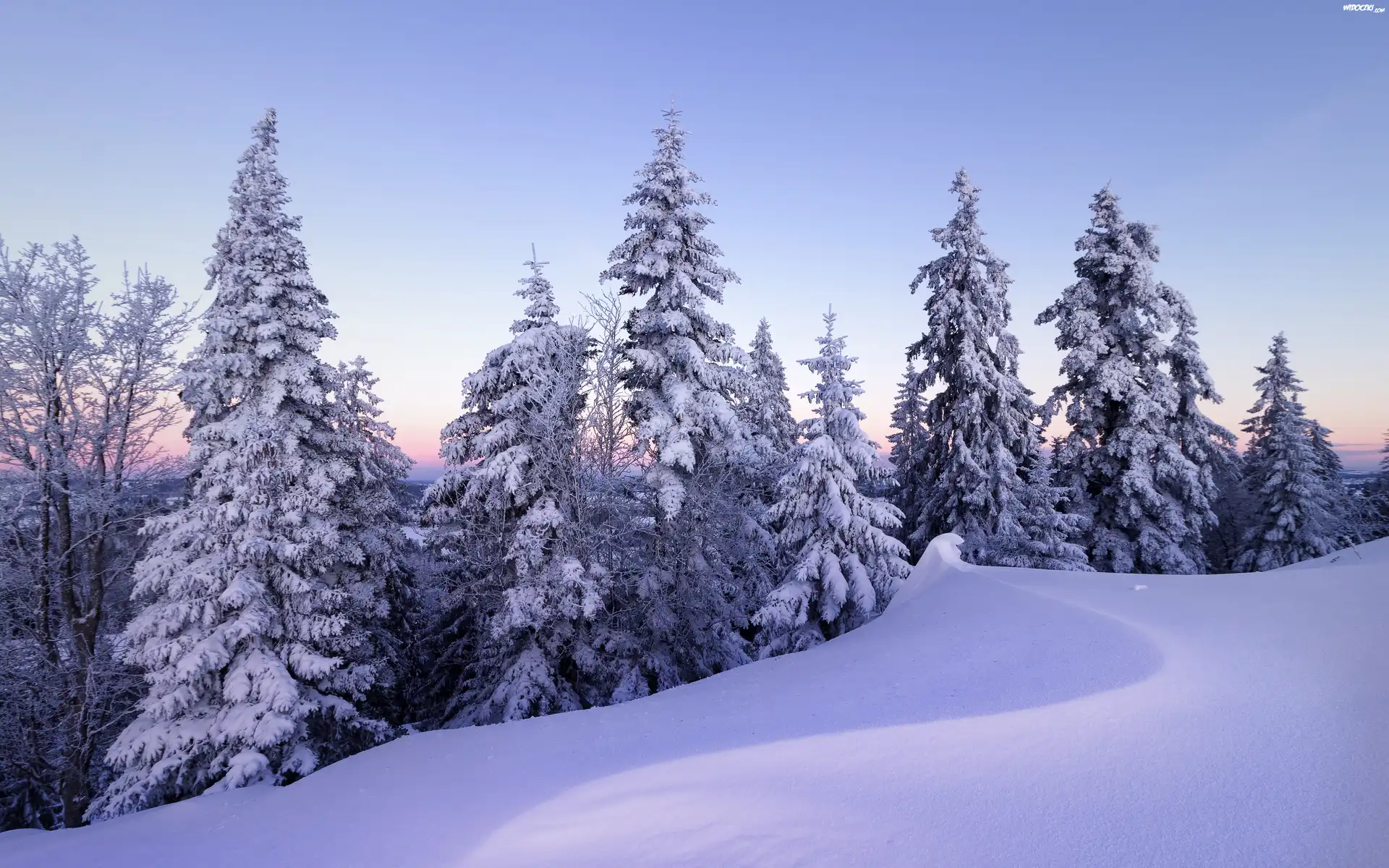 Zdj臋cia, Las, Drzewa, Zima, Zaspa