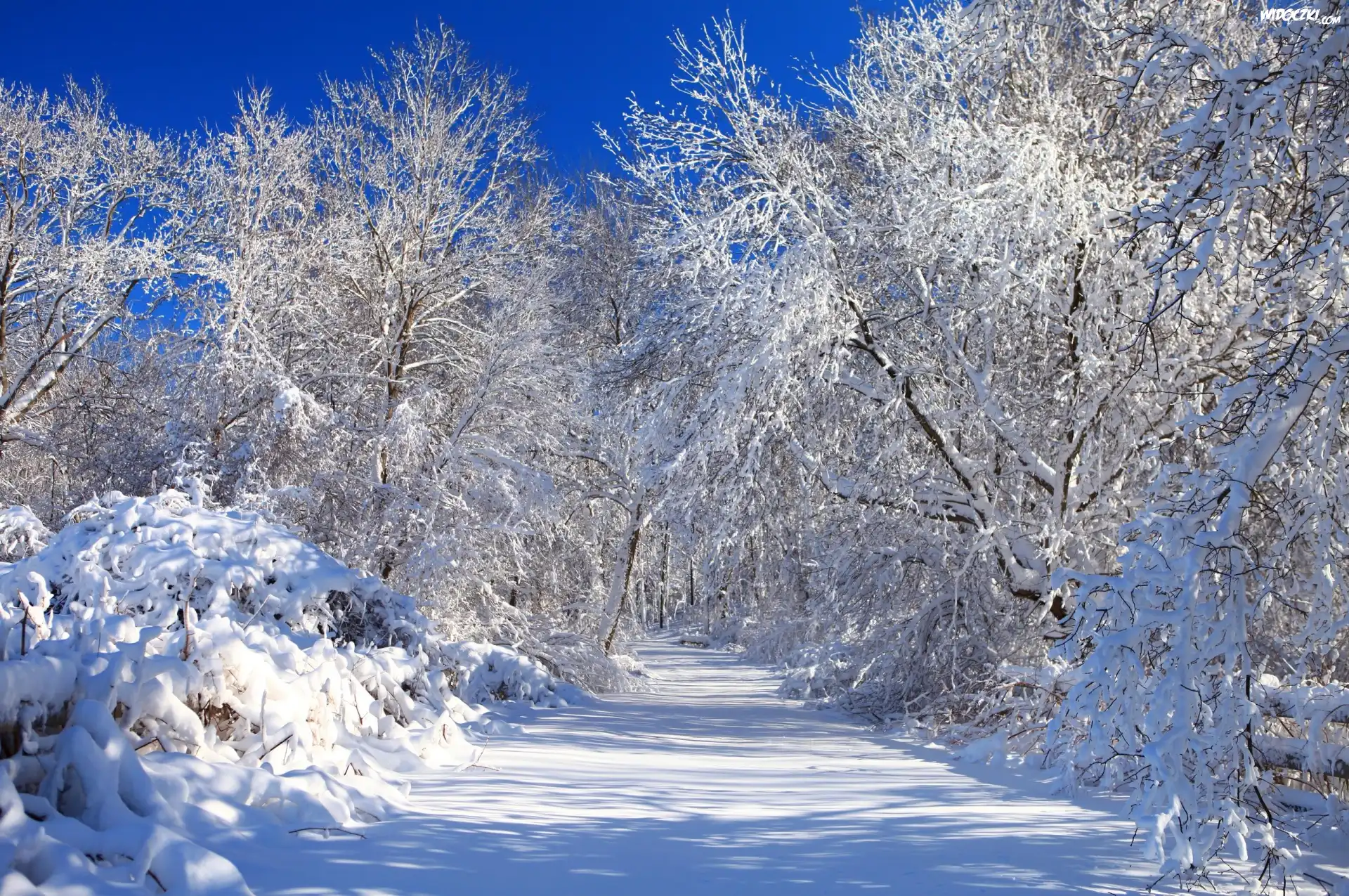 Zdjęcia, Las, Drzewa, Śnieg, Zima, Droga
