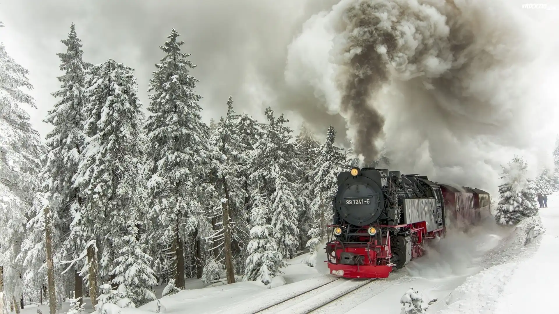 Zdjęcia, Zima, Las, Pociąg