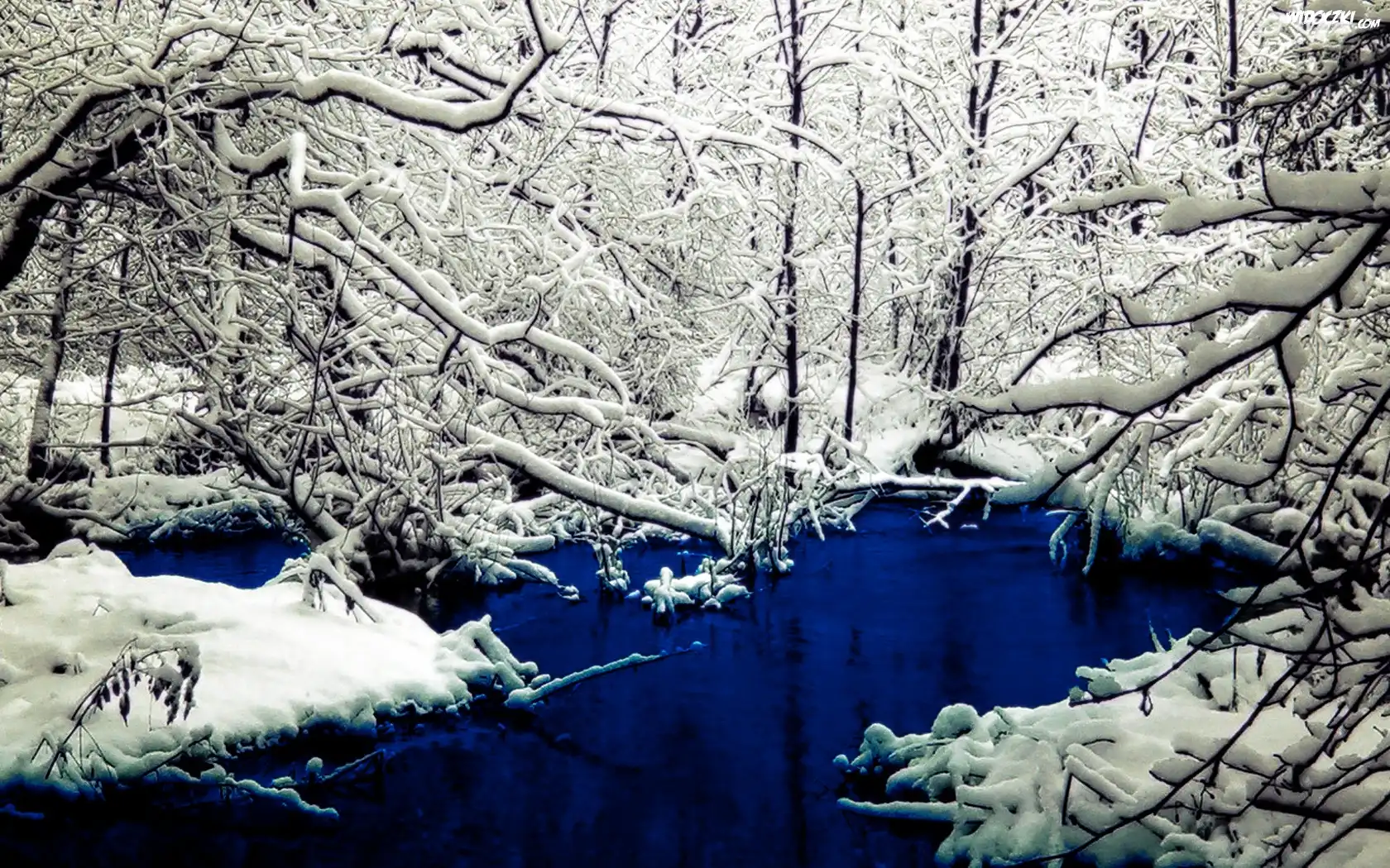 Zdjęcia, Zima, Las, Rzeka