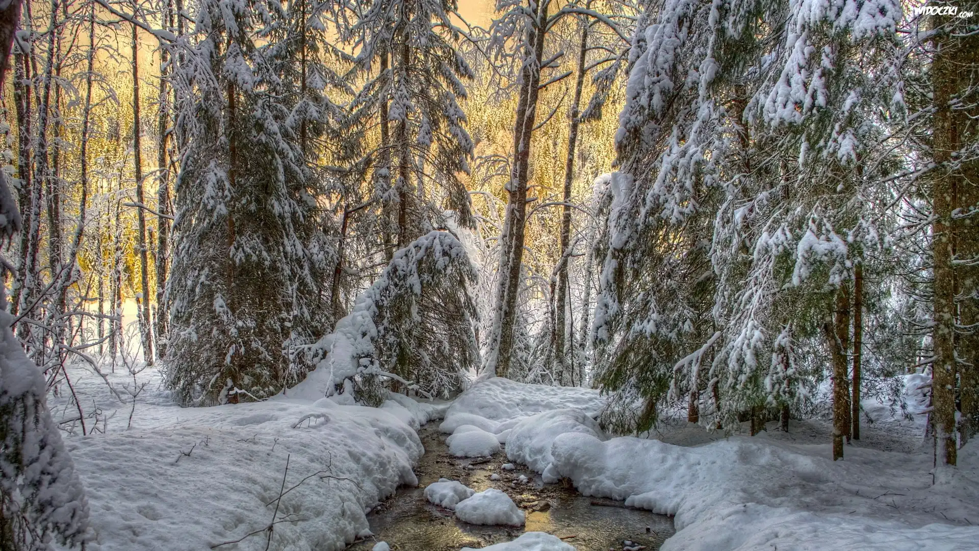 Zdj臋cia, Zima, Las, Strumyk