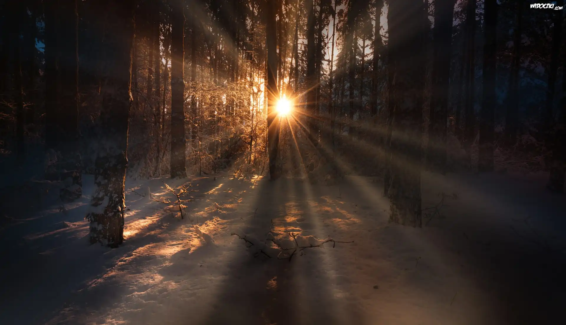 Zdjęcia, Las, Przebijające światło, Zima, Śnieg