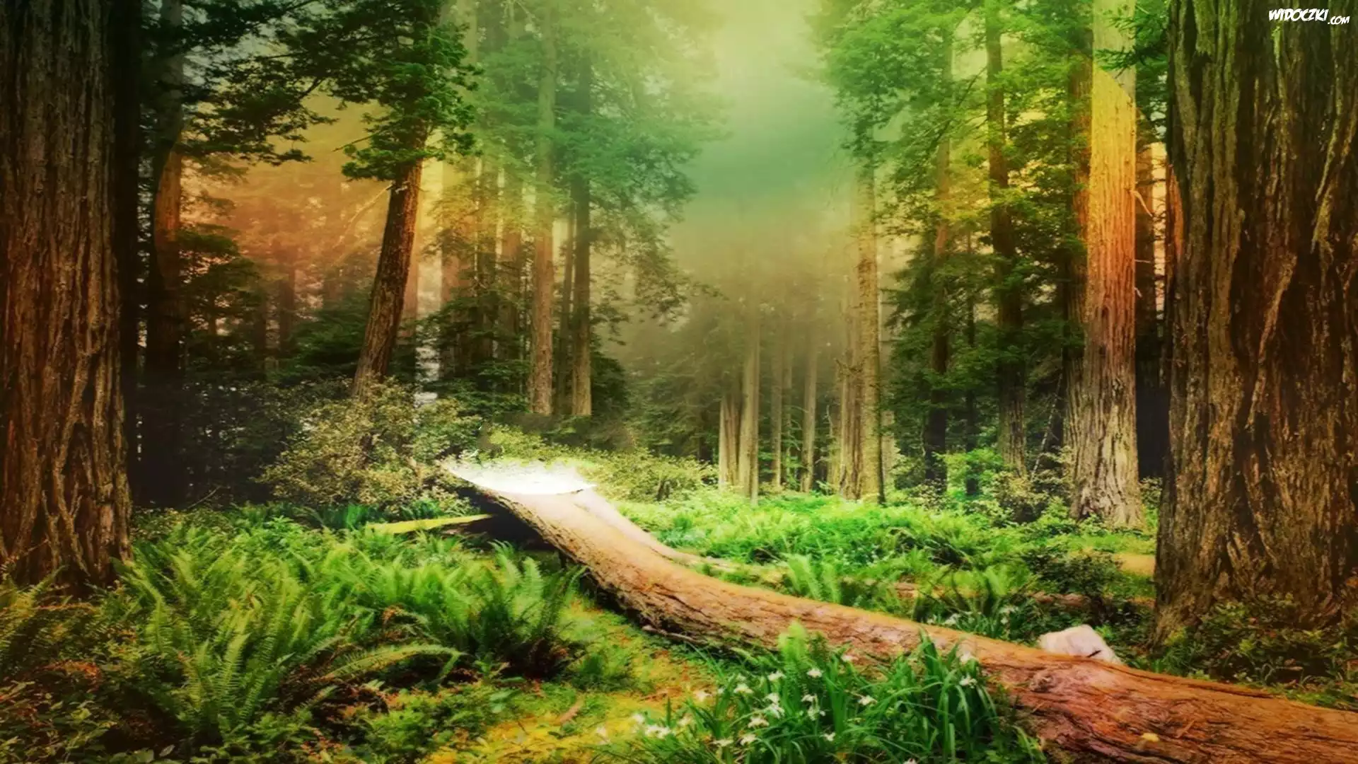 Zdjęcia, Las, Mgła, Zwalone, Drzewo