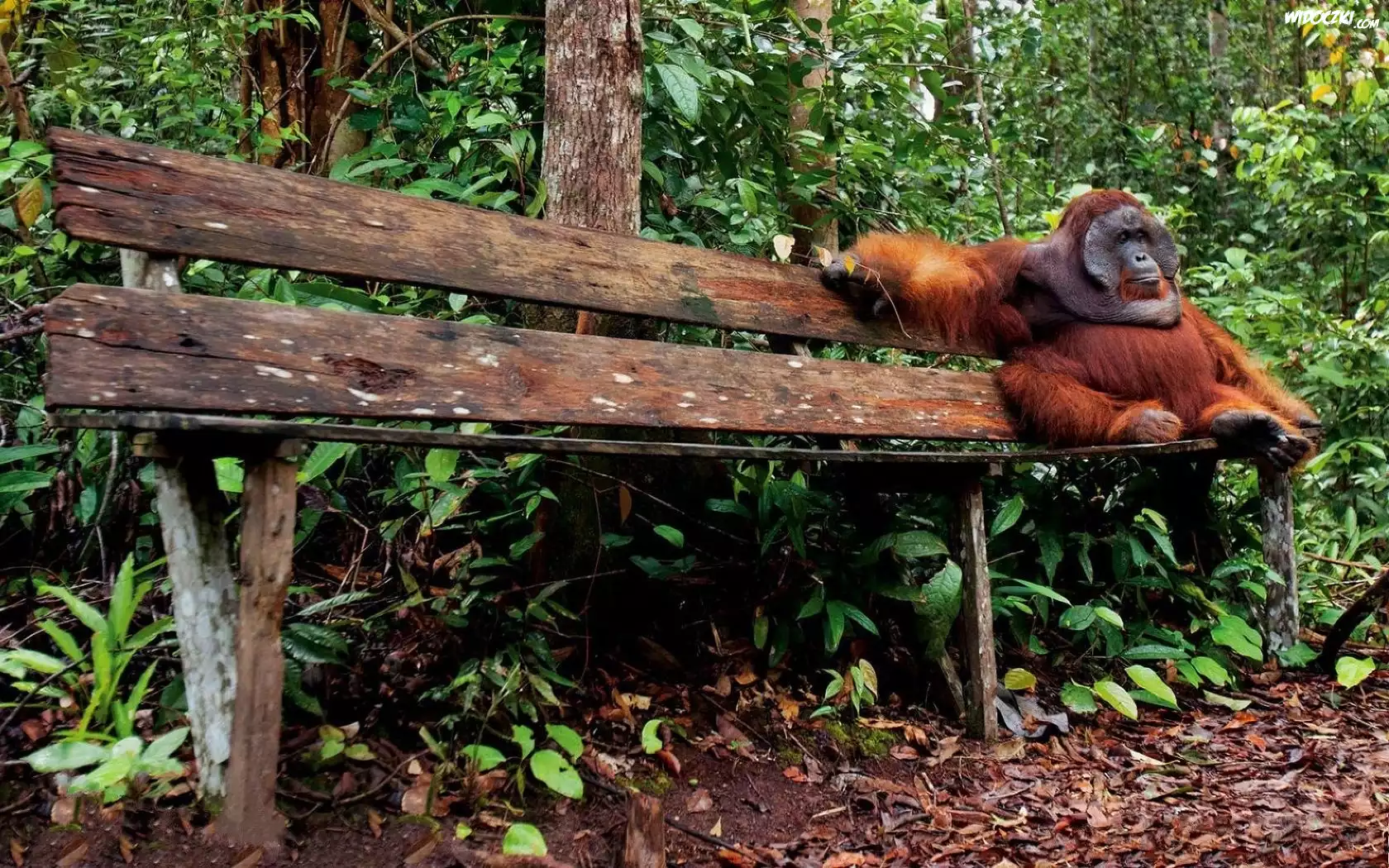 Zdjęcia, Lasek, Ławka, Siedząca, Małpa