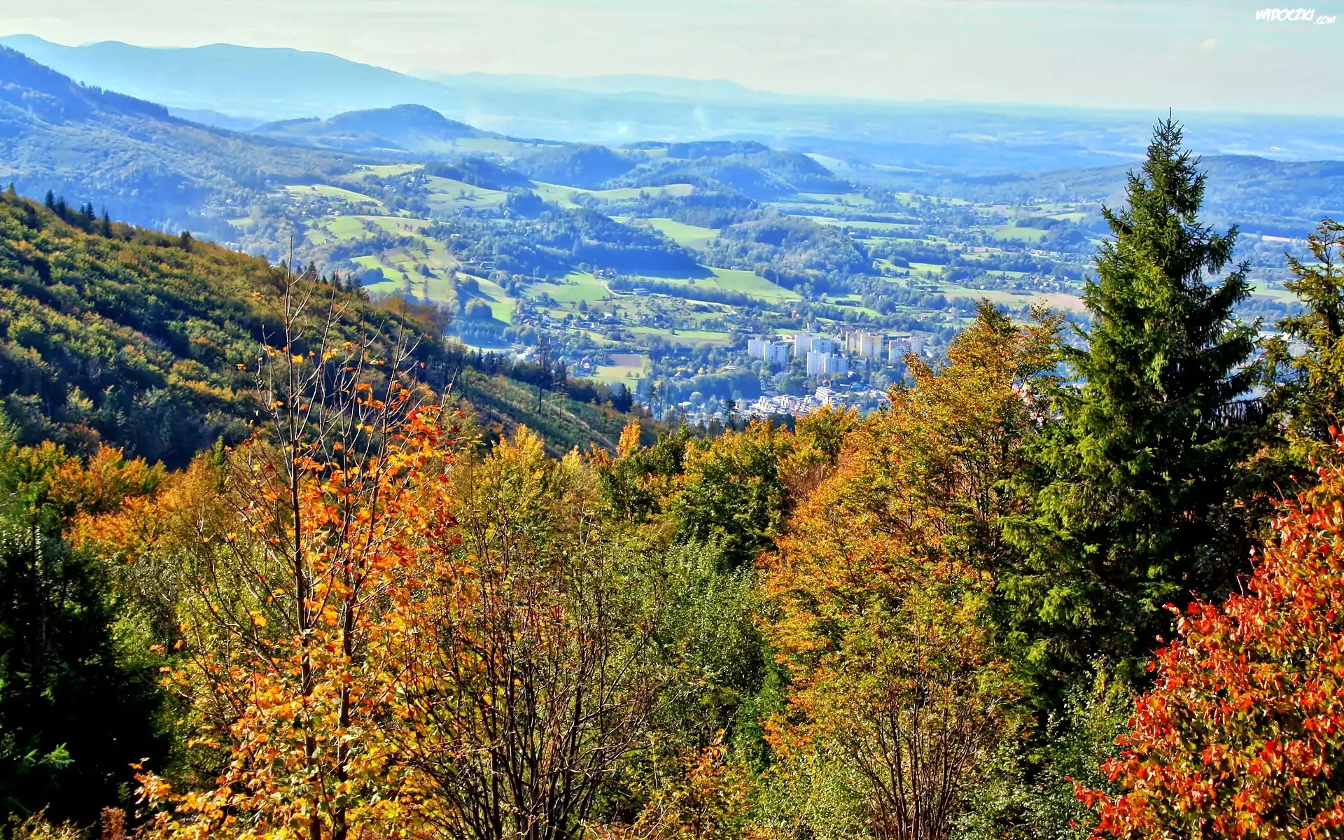 Zdjęcia, Beskid, Śląski, W Dolinie, Panorama, Ustronia, Góry, Las