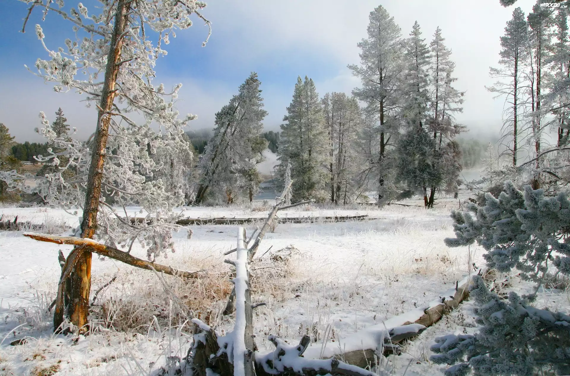 Zdj臋cia, Lasy, Pola, Drzewa, Zima