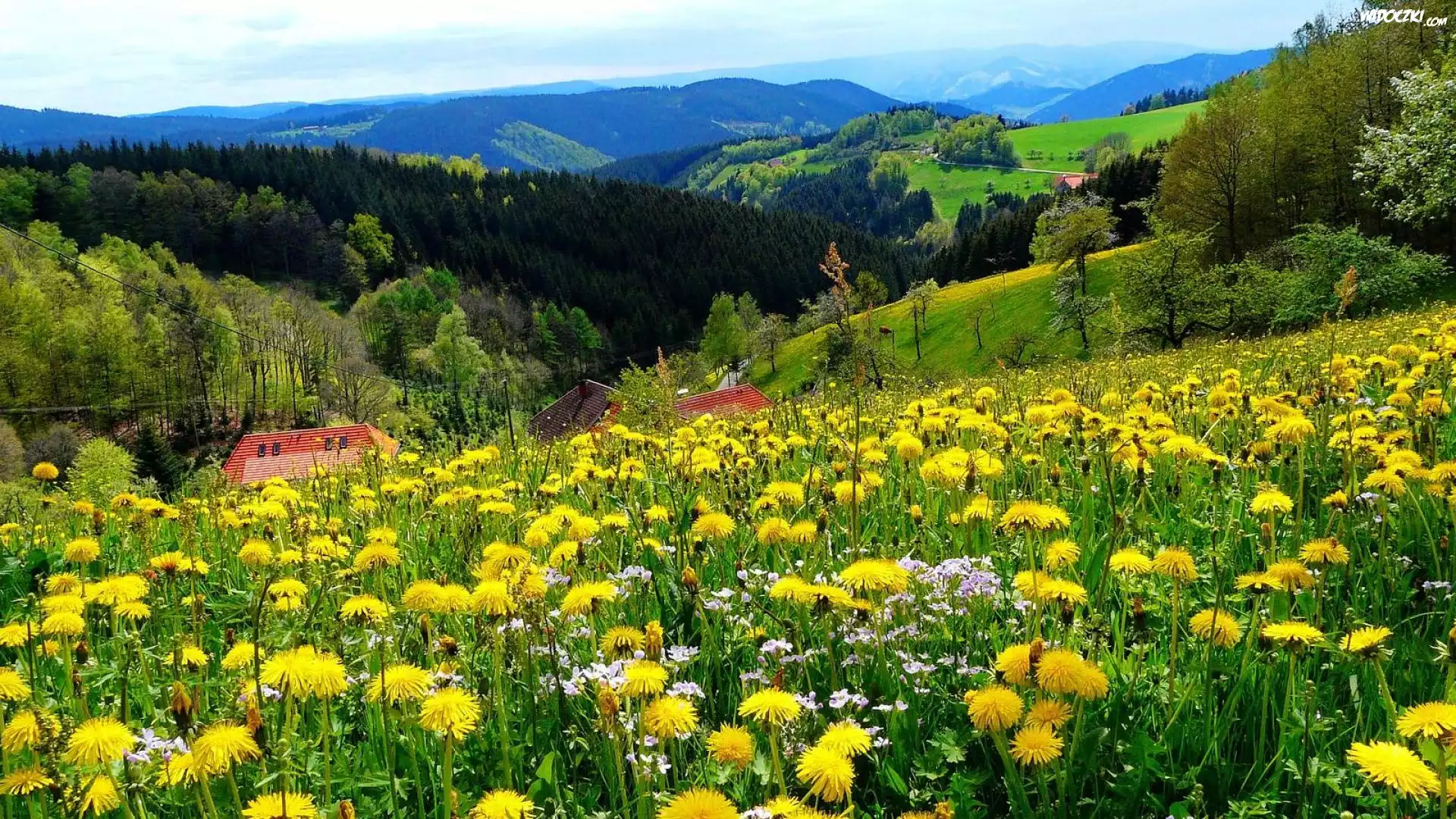 Wisona, Las Góra Las, Kolorowe, Kwiaty Pole, Trawa, Chmury Łąka, Drzewo Góra Las, Przenikające Światło Łąka, Woda, Niebo Góra, Jeziora Góra, Niebo Jezioro, Mgła, Las, Jeleń Góra, łąki Zielone, Łąki, Lazurowe, Niebo Zielona, Łąka, Wąska, Rzeczka, Drzewa