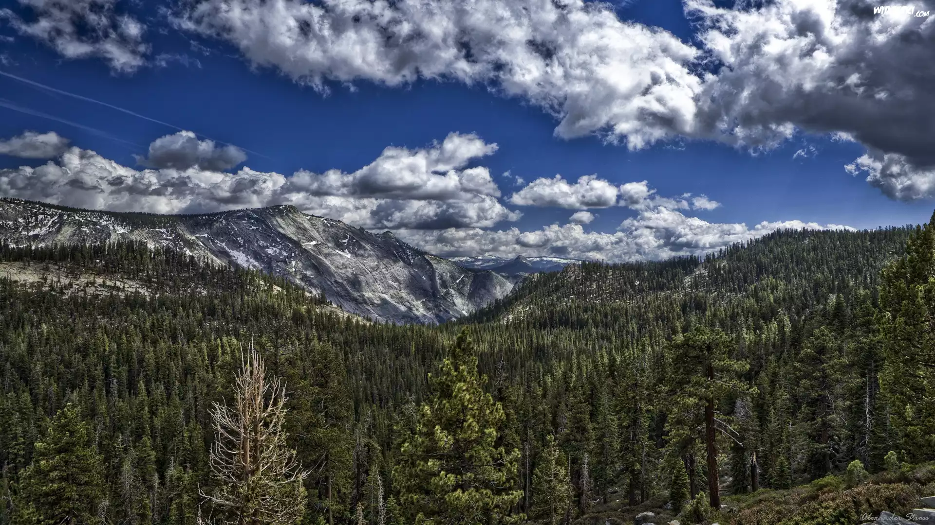 Zdjęcia, Lasy, Iglaste, Góry, Chmury