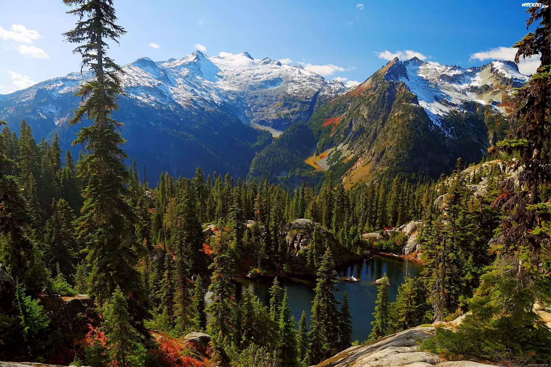 Zdjęcia, Góry, Lasy, Jezioro