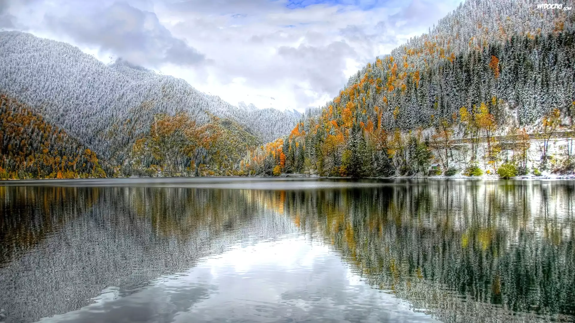 Zdjęcia, Lasy, Kolorowe, Drzewa, Jezioro, Góry