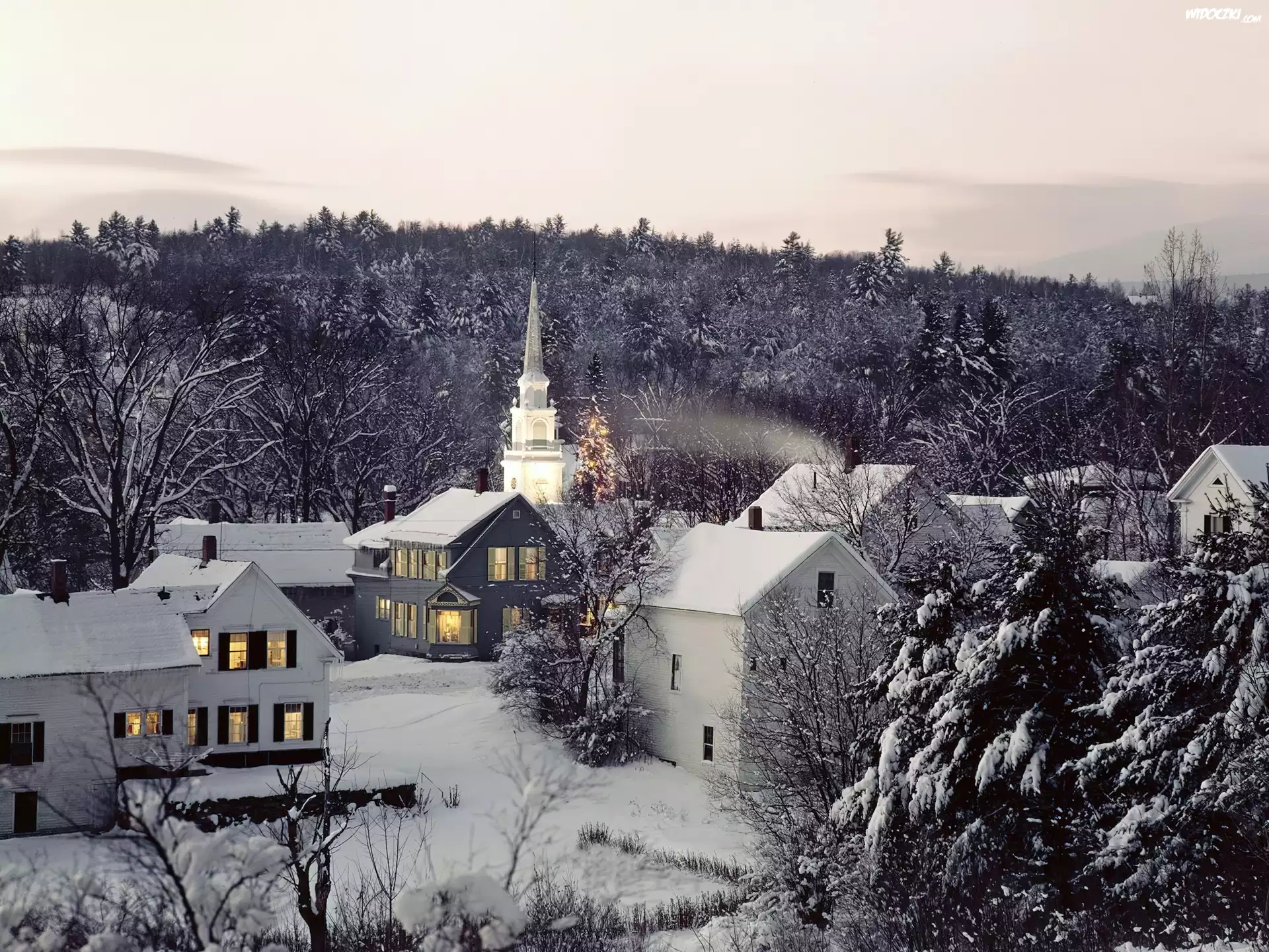 Zdjęcia, Lasy, Zima, Kościół, Budynki