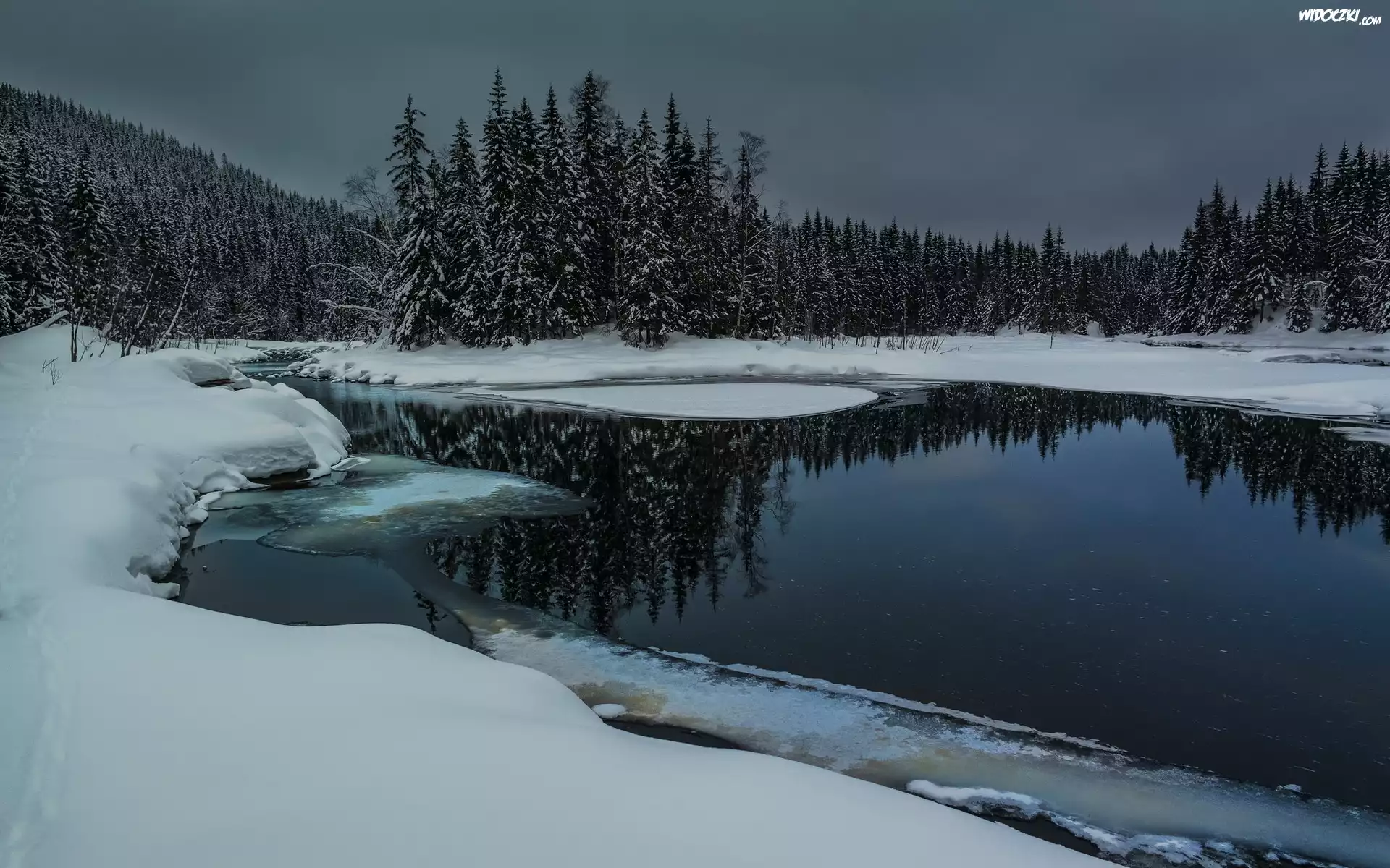 Lasy, Rzeka, Åšnieg, Zmierzch