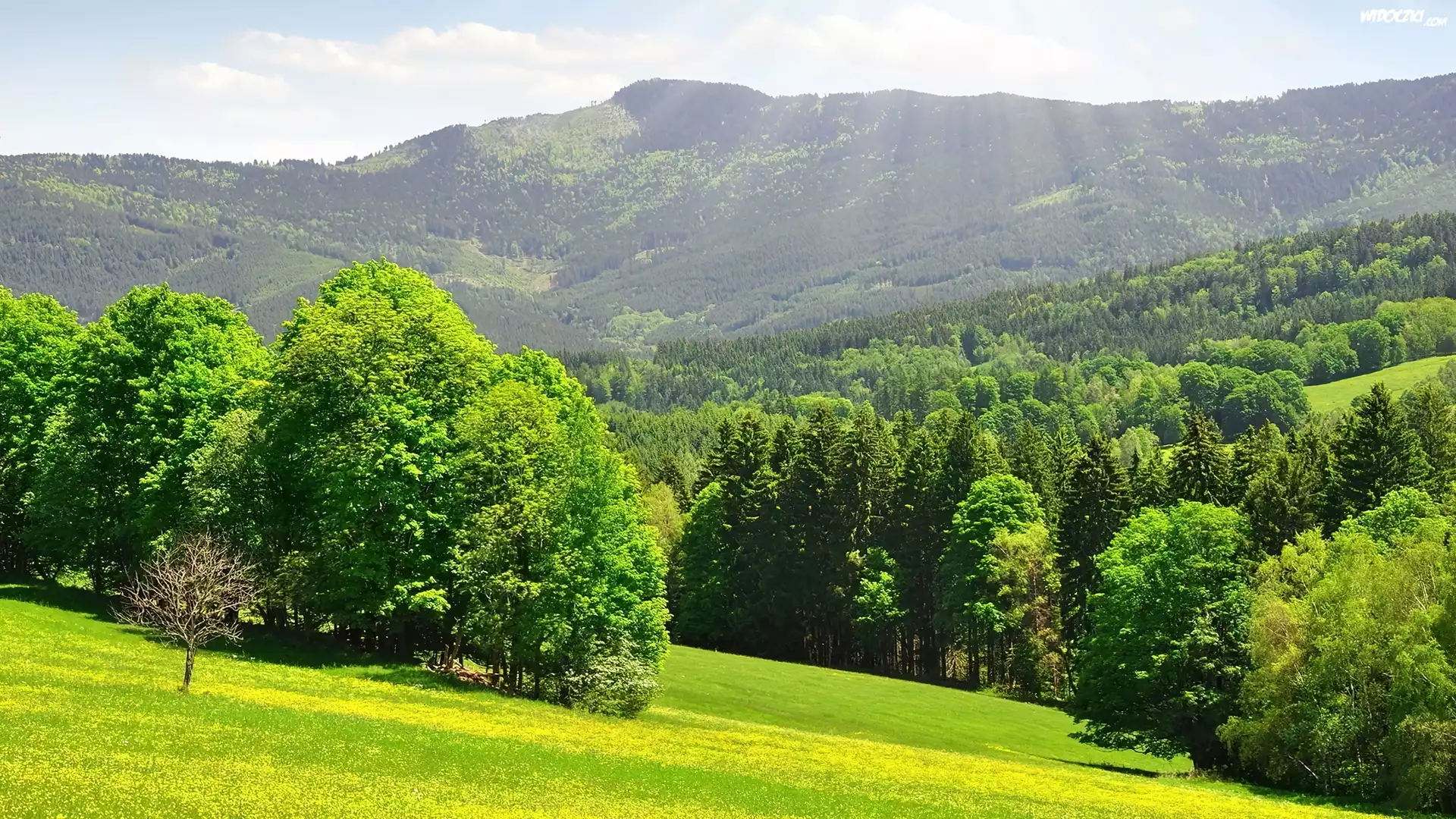 Lasy, Wzgórza, Promienie, Słońca