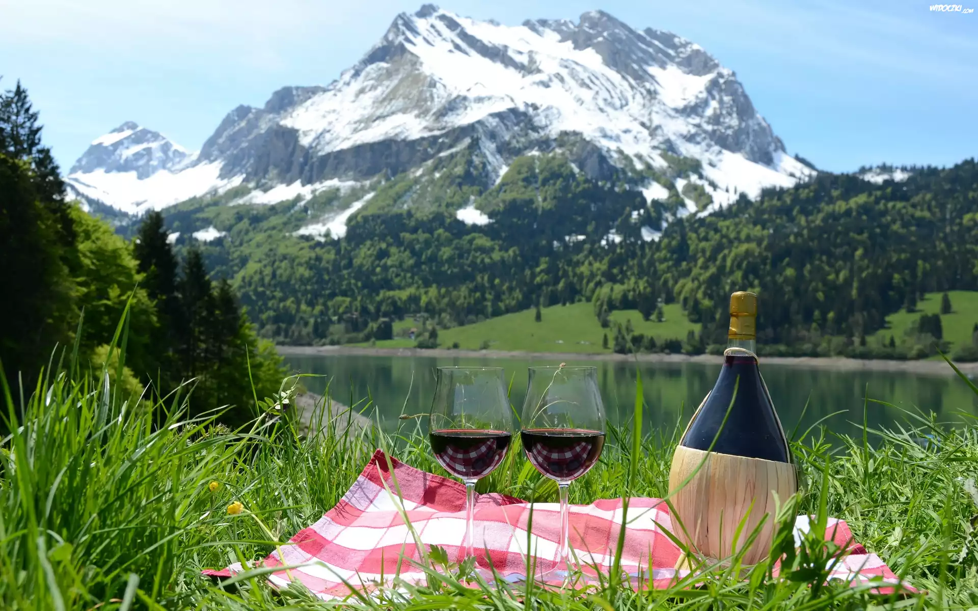 Góry, Lasy, Rzeka, Łąka, Wino, Antałek, Piknik, Wiosna