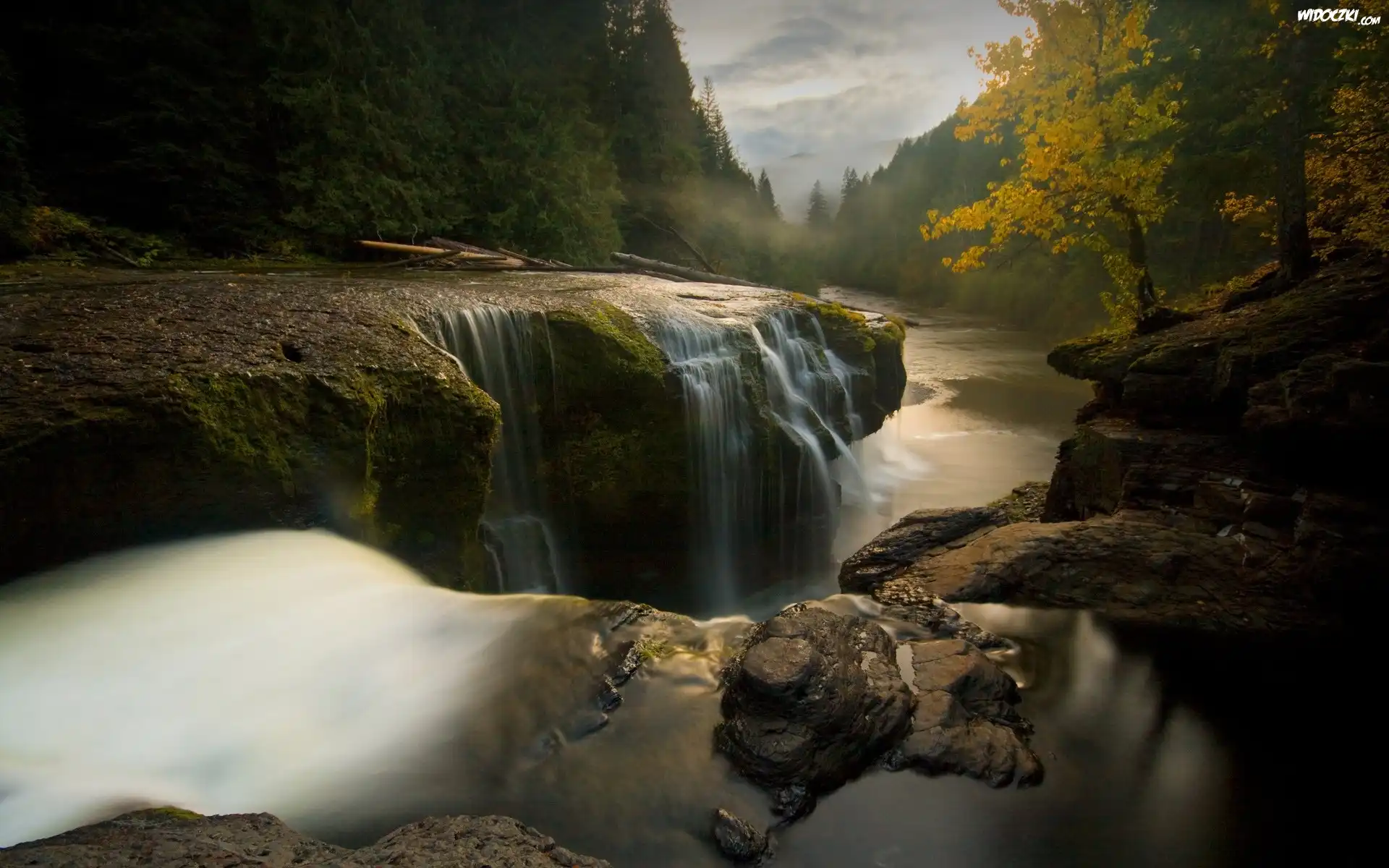 Zdjęcia, Lasy, Rzeka, Wodospad, Skała