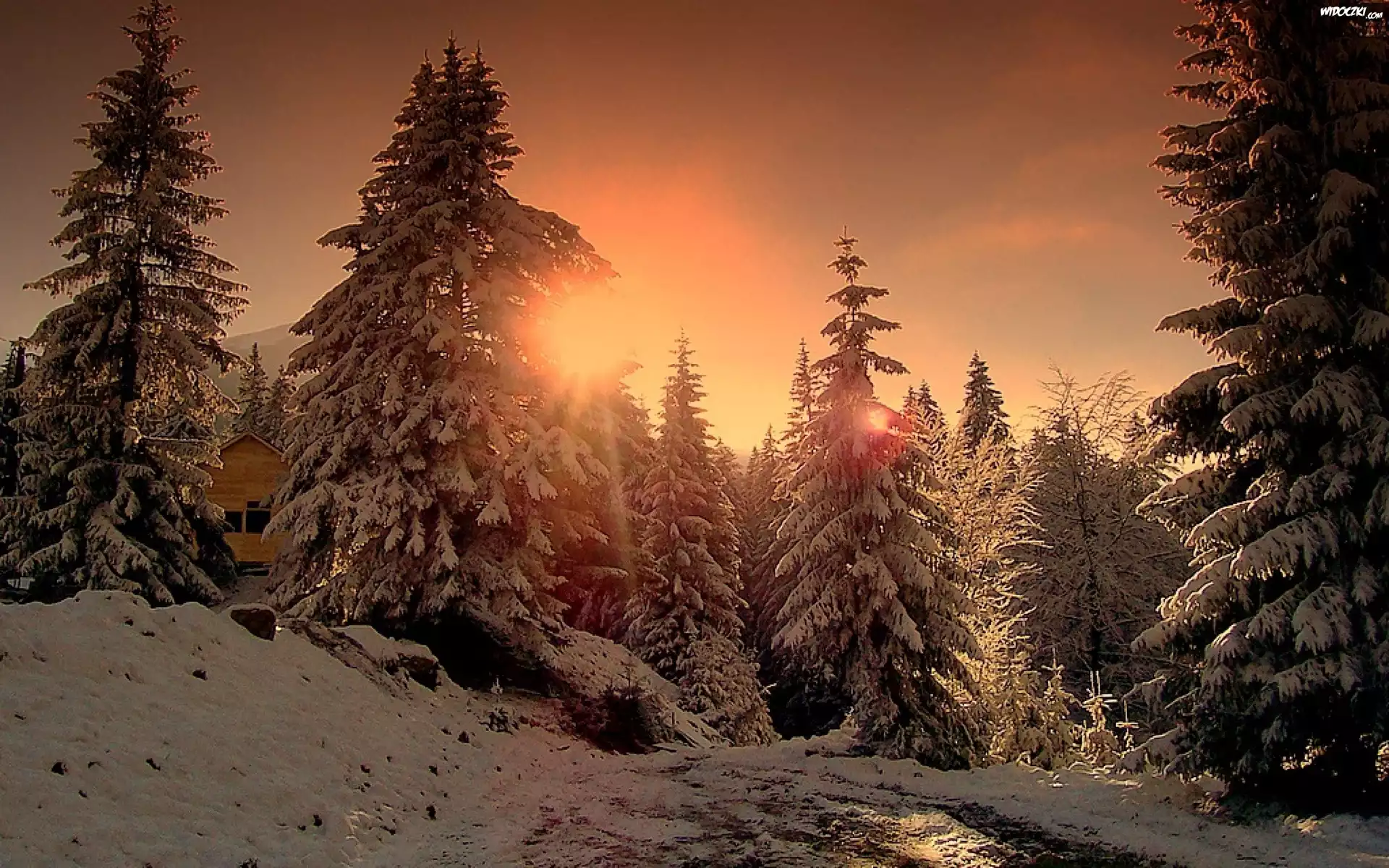 Zdjęcia, Lasy, Choinki, Zachody, Słońca