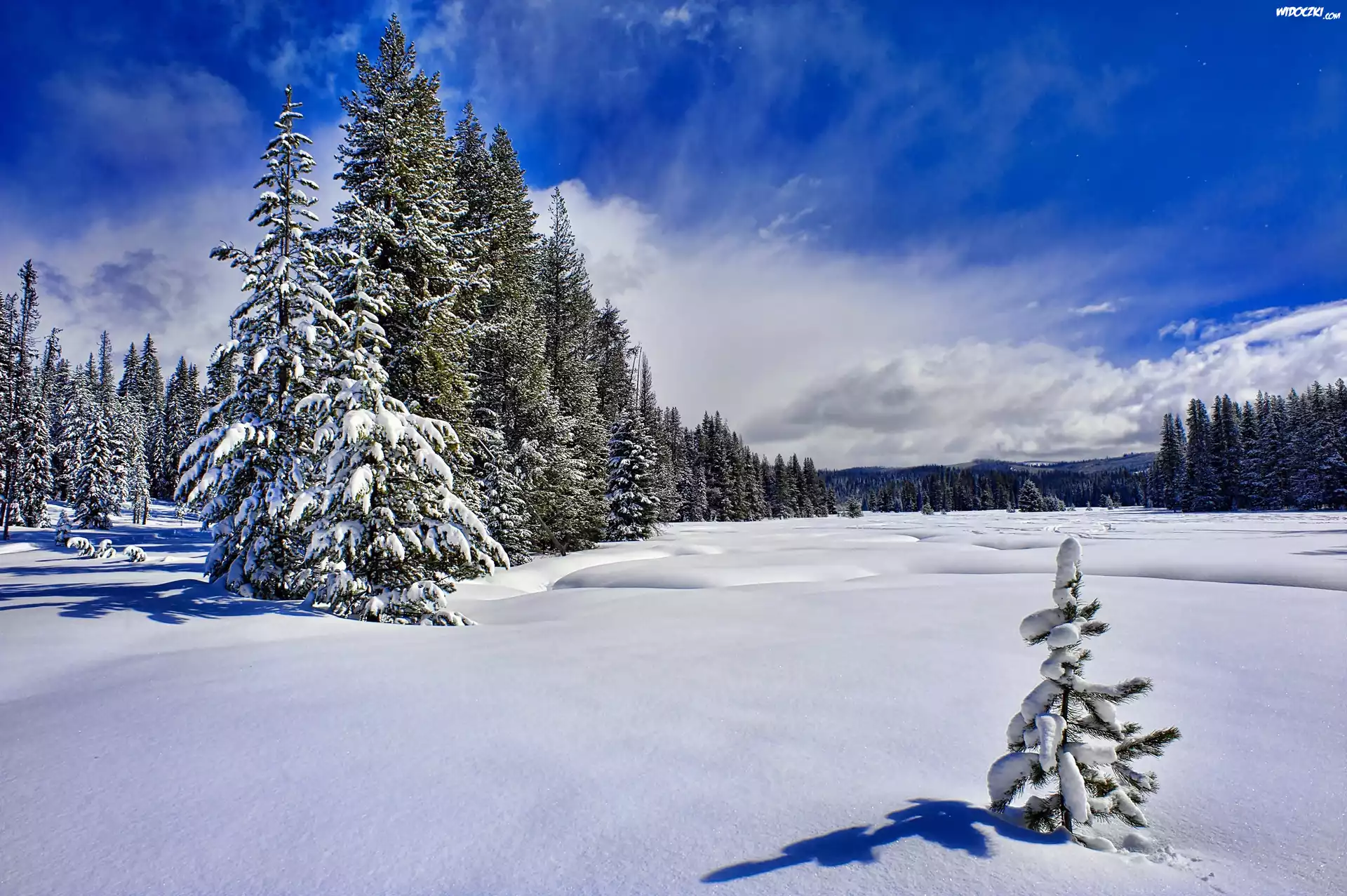 Zdjęcia, Zima, Lasy, Świerki