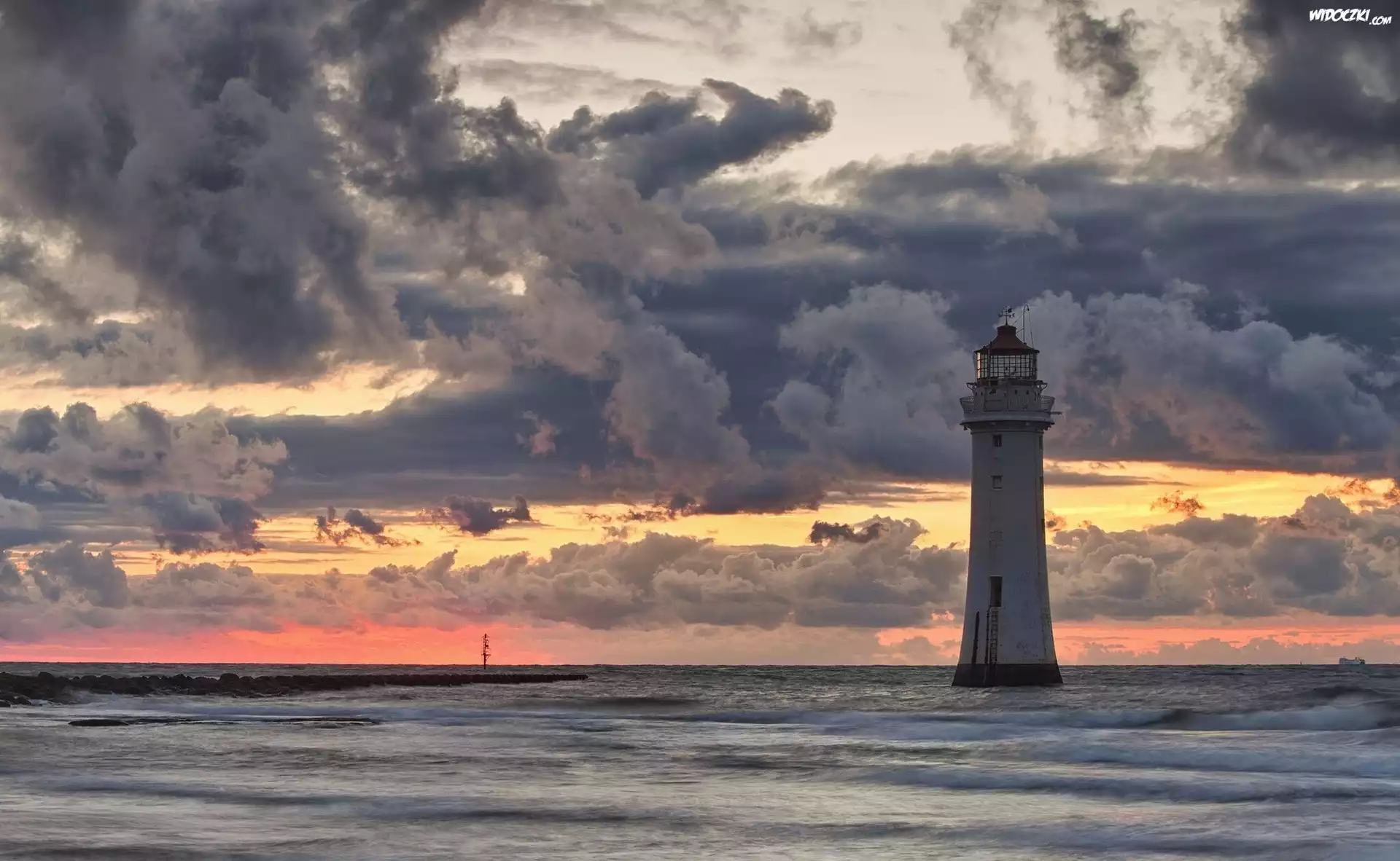 Zdj臋cia, Latarnia, Morska, Niebo, Chmury, Morze