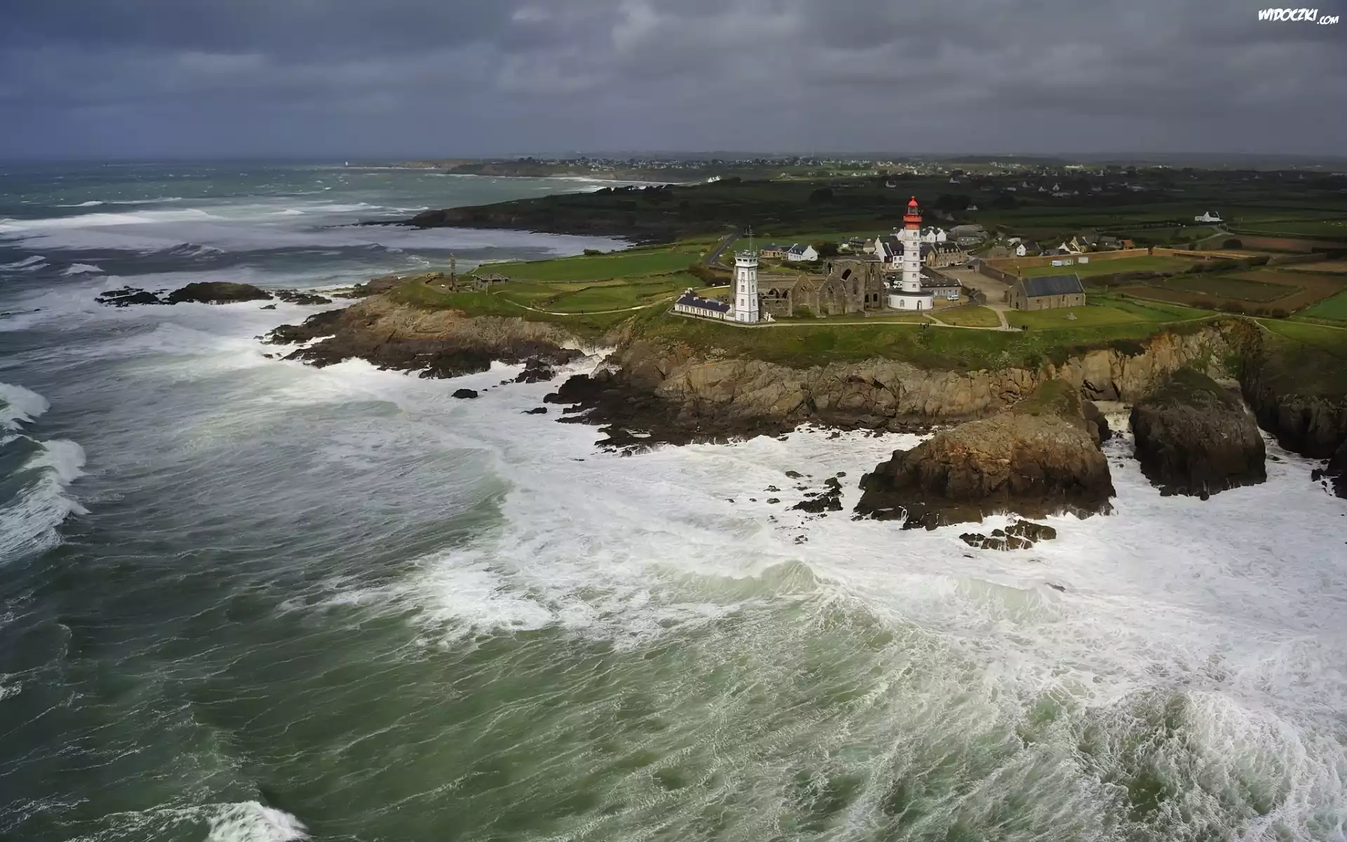 Zdjęcia, Latarnia, Morska, Wybrzeże, Skały, Fale, Horyzont