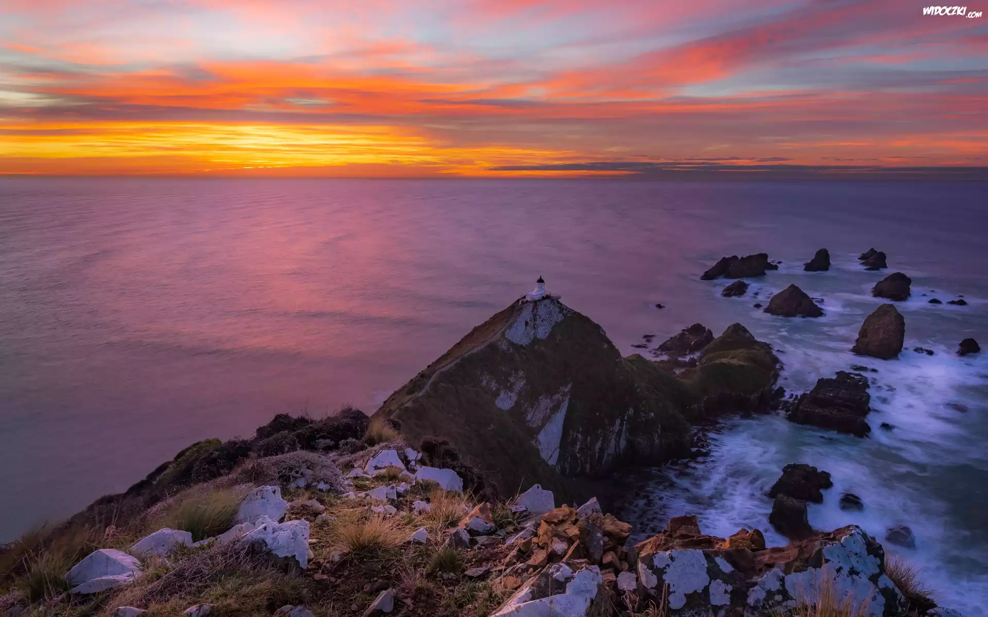 Zdjęcia, Latarnia morska Nugget Point, Morze, Skały, Region Otago, Nowa Zelandia