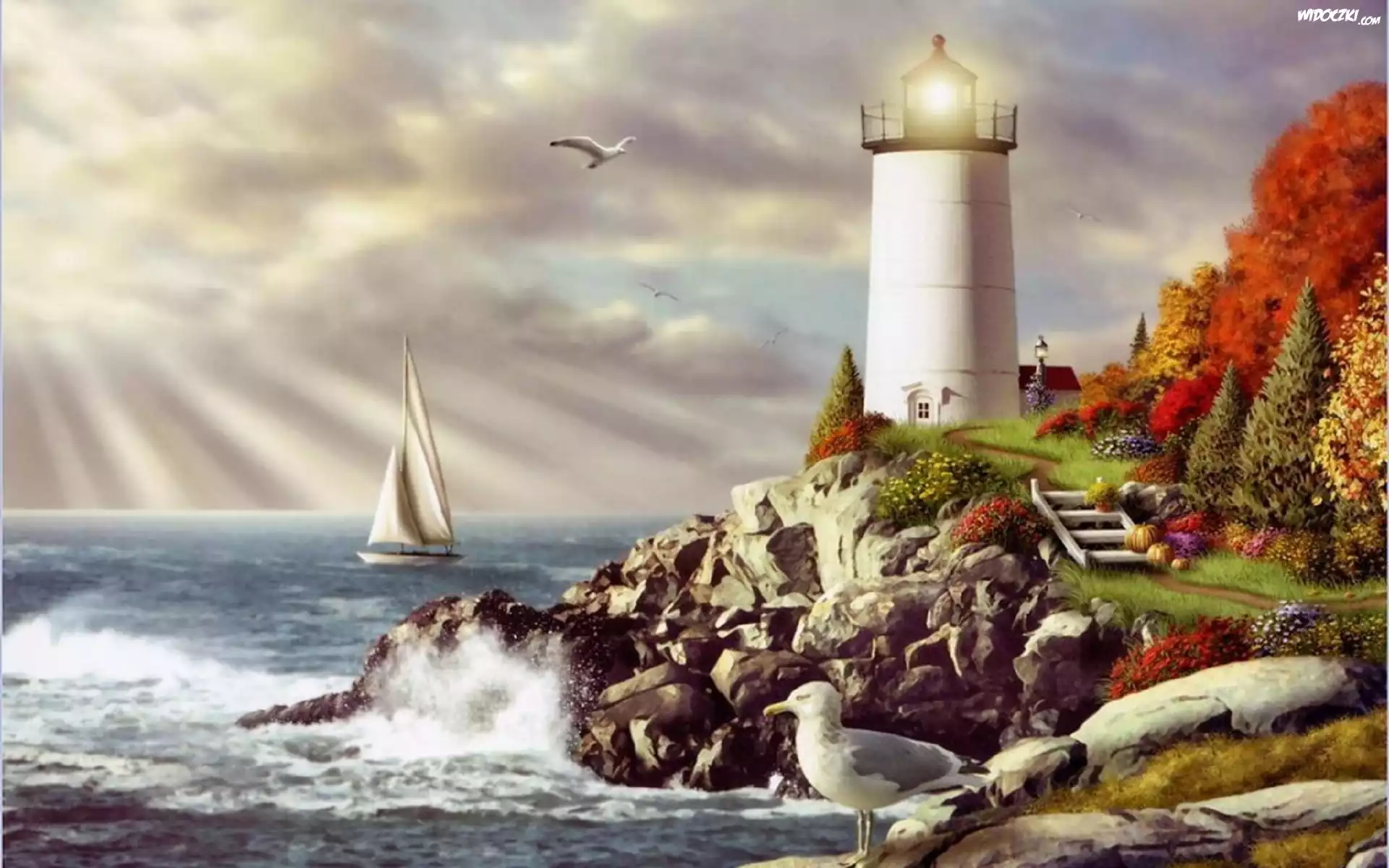 Zdjęcia, Latarnia, Morska, Morze, Promienie, Słoneczne