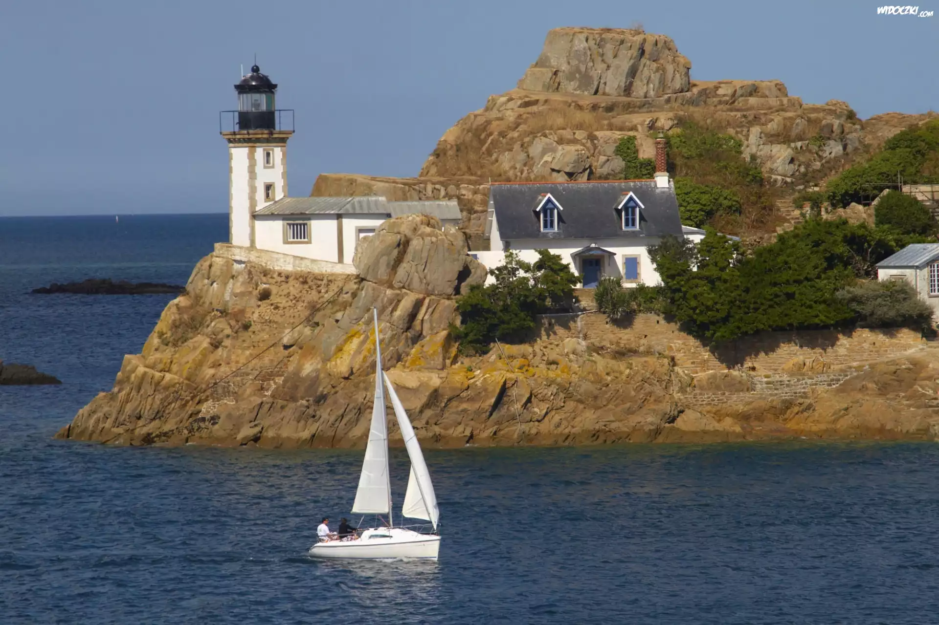 Zdjęcia, Latarnia, Morska, Wybrzeże, Skały, Jacht