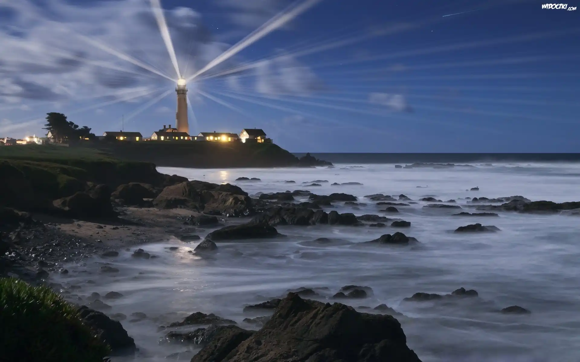 Zdjęcia, Latarnia, Morska, Wybrzeże, Skały, Noc