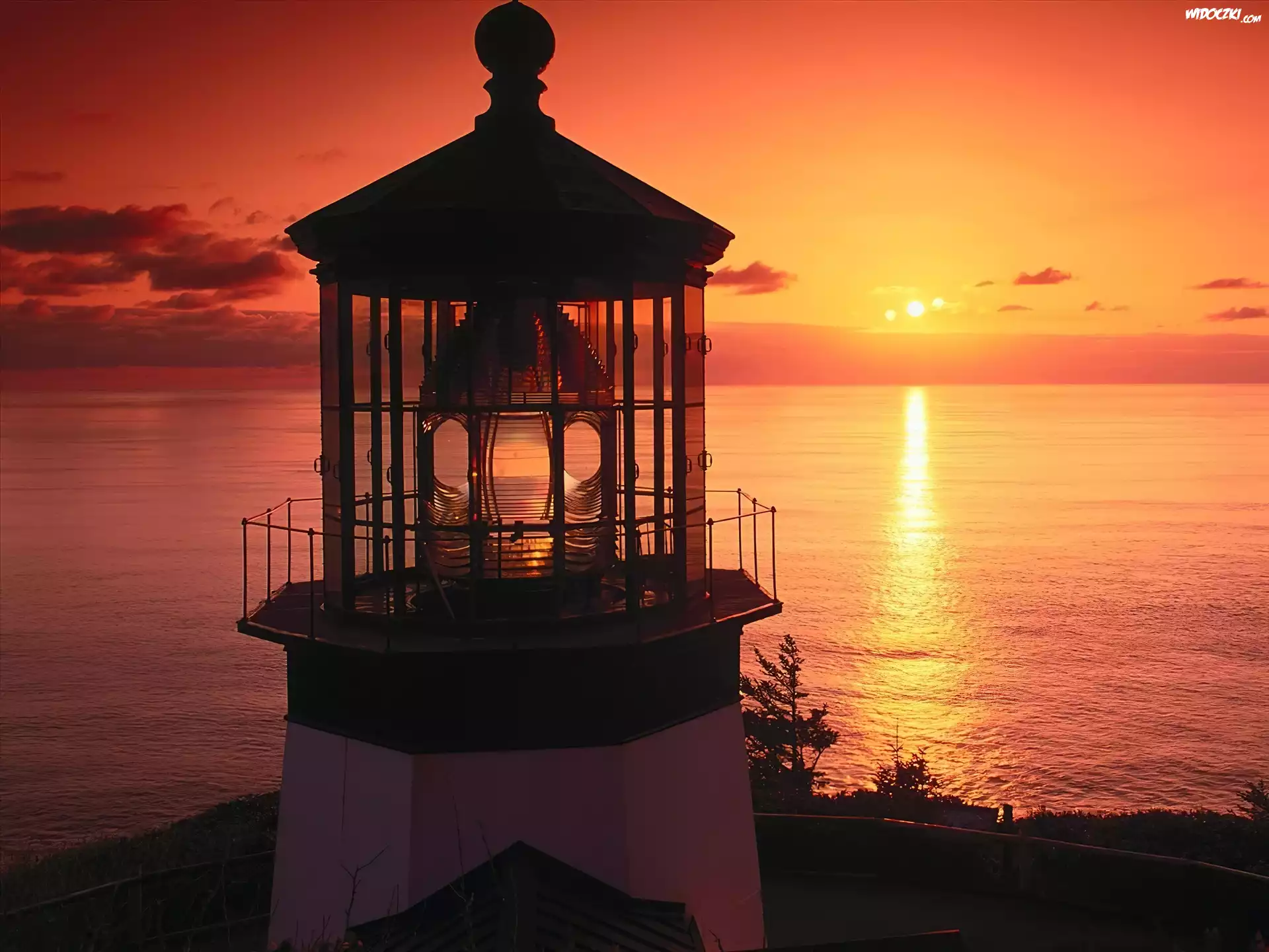 Zdjęcia, Latarnia, Morska, Zachód, Słońca, Morze