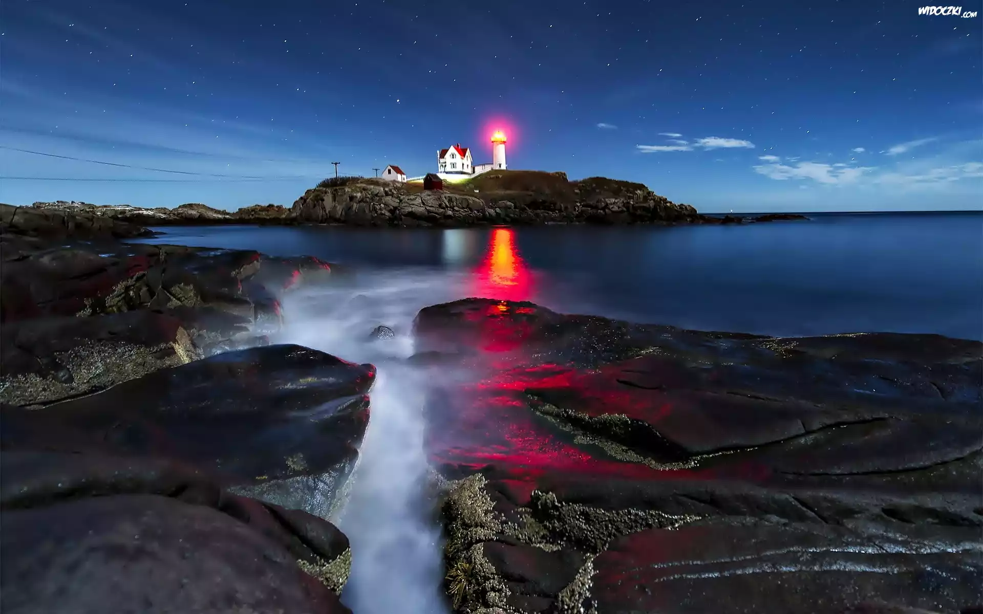 Zdjęcia, Latarnia Morska, Domy, Morze, Wybrzeże, Skały